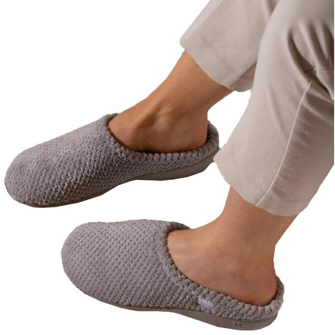 Isotoner Popcorn Terry Mule Slippers - Pale Grey