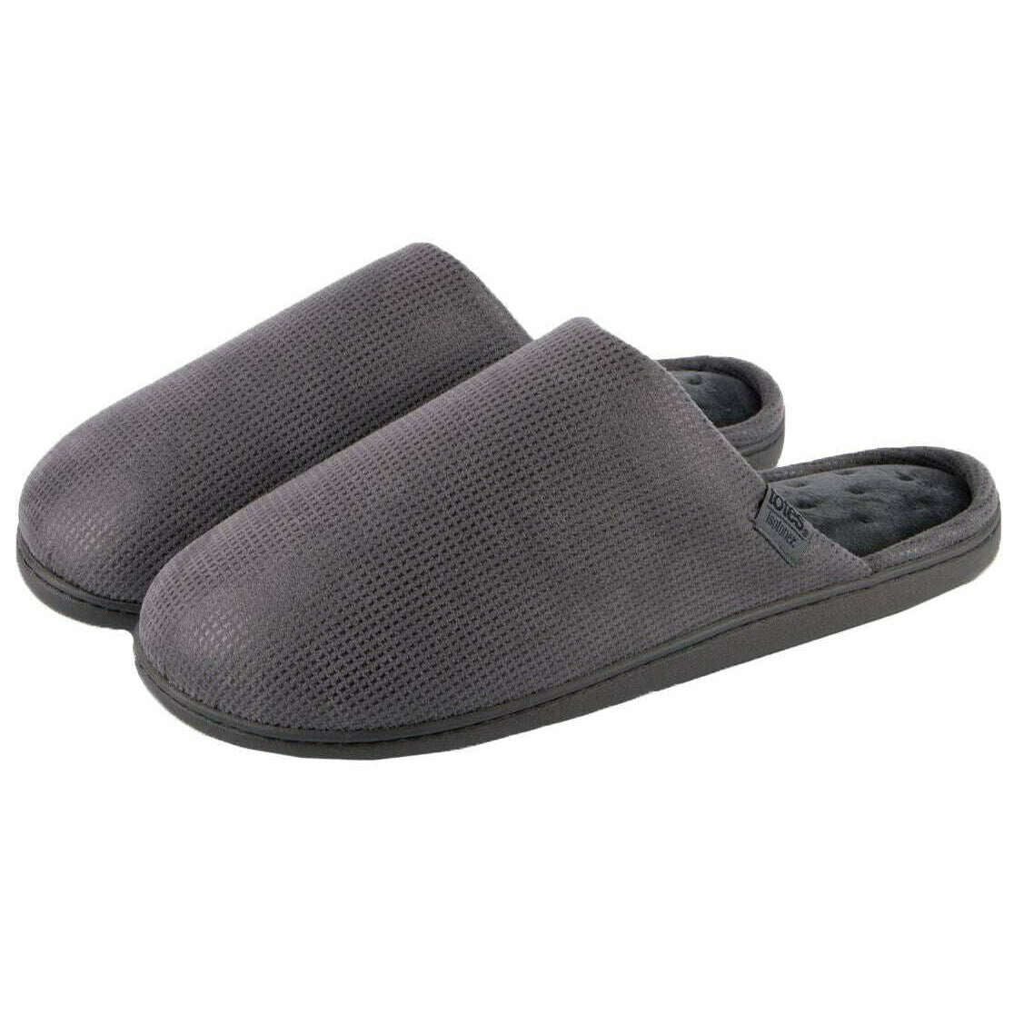 These men's square patterned smart mule slippers by the brand Isotoner are made from 100% polyester and are showcased in grey. Also the grey slippers are designed in a plain pattern, It is recommended to machine wash at 30 degrees to keep these slippers in good condition. All the slippers come complete with isotoner packaging. The Isotoner Square Patterned Smart Mule Slippers - Grey are a must have pair for any gentleman, offering exceptional comfort, support and warmth! Featuring 360 surround comfort memory foam and pillow step cushioned technology with a foam layer will feel like you re walking on a cloud with the heel and arch support and durable ergo dot sole that ensures a slip-resistant wear. This mule style will keep your feet nice and toasty with the soft materials and coverage of the foot, whilst also being breathable with an open back.