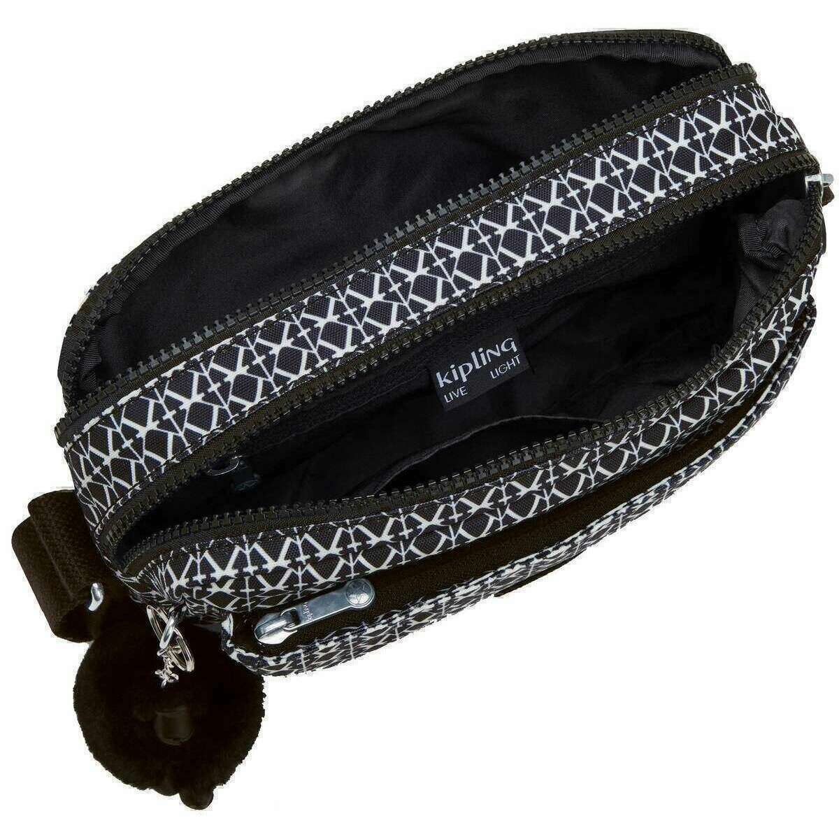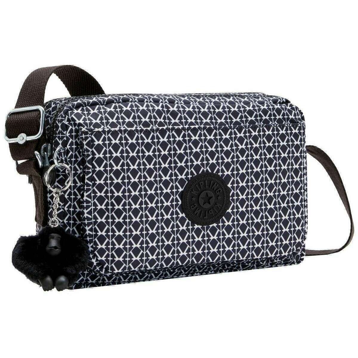Introducing this women's abanu m crossbody bag by Kipling, it is manufactured from 100% recycled polyester in a black/white colour. It measures 17cm(height) x 24cm(width) x 9cm(depth). All the bags come complete in kipling packaging. The Kipling Abanu M Crossbody Bag - Black/White has many practical features which are perfect for organising your day-to-day essentials. This piece has 2 zipped main compartments, 2 internal pockets in the form of an open compartment and a zipped section as well as a pocket at the front and at the back. It even has 2 pen pockets, so you are equipped for whatever the day throws at you. The Abanu M is fitted with an adjustable shoulder strap, making it effortless to find the perfect carrying comfort. Finished with the stunning Kipling Robot Monkey which is an awesome feature that everyone will love.