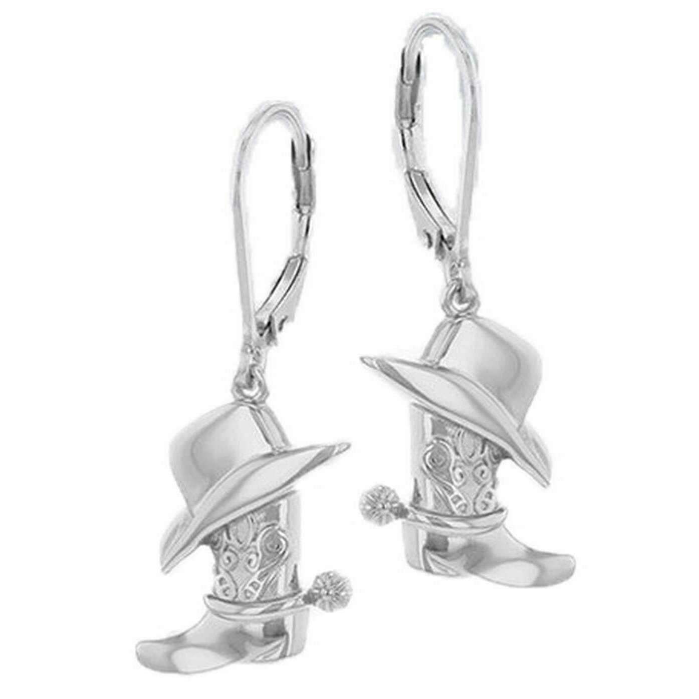 KJ Beckett Cowboy Hat and Boot Lever Back Drop Earring - Silver