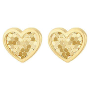 These well made women's disco heart stud earrings from KJ Beckett come in a yellow gold colour and are manufactured from 9ct yellow gold. All the earrings come complete with packaging. The KJ Beckett Disco Heart Stud Earrings - Yellow Gold are a stylish way to add sparkle to your everyday look. Bright, bold, and beautifully crafted, these Disco Heart stud earrings feature a textured disco Heart design that catches and reflects the light from every angle, creating a dazzling shimmer. Offering effortless elegance without overwhelming your style, these earrings make a thoughtful gift for someone special.