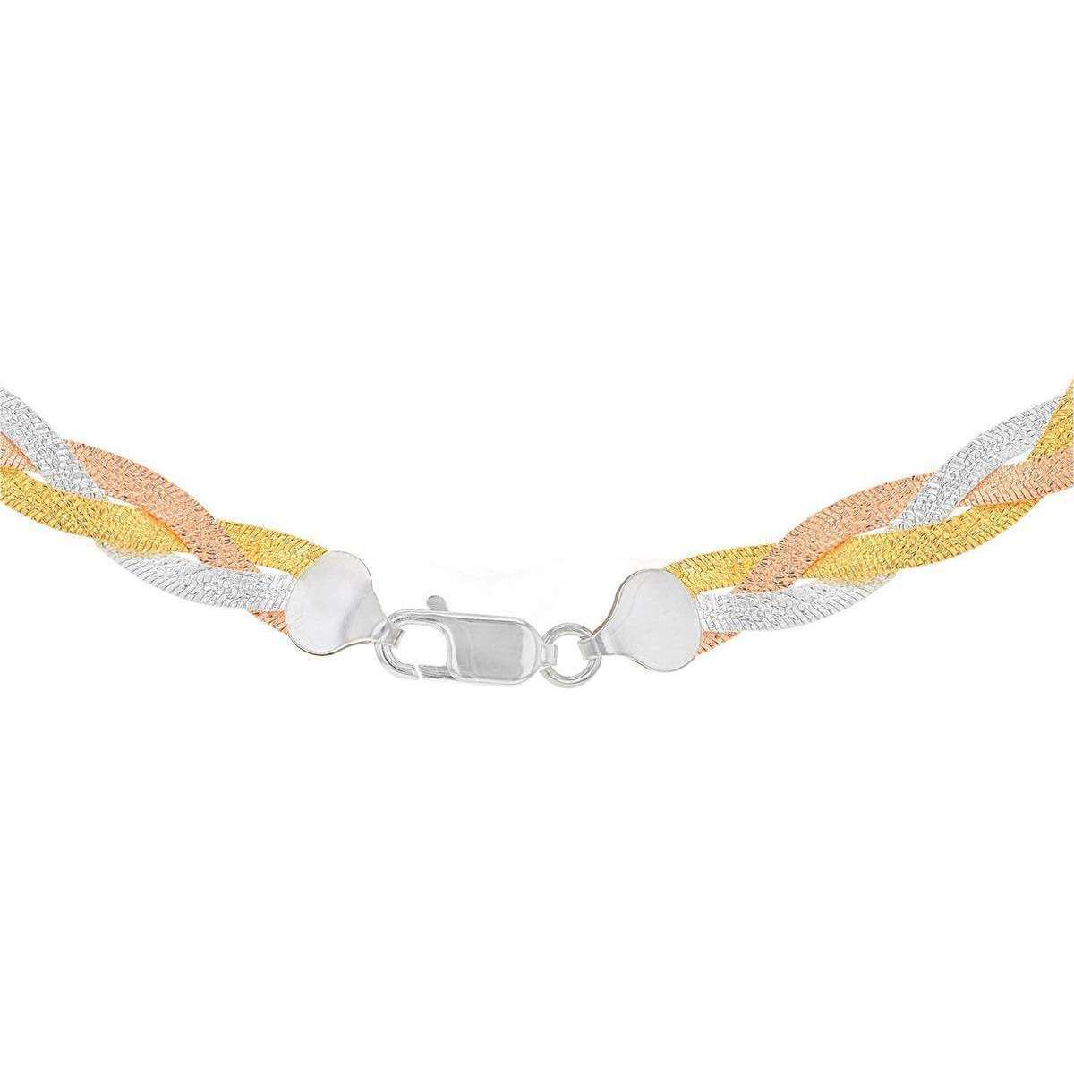 KJ Beckett Textured Plait Herringbone Necklace - Silver/Gold/Rose Gold