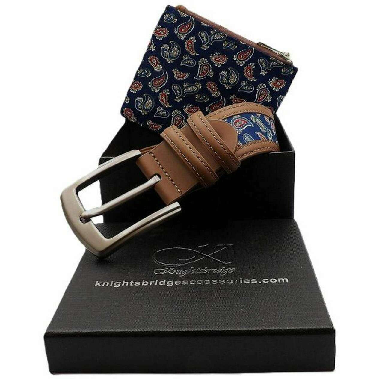 Knightsbridge Neckwear Buckingham Paisley Belt and Wallet Set - Brown