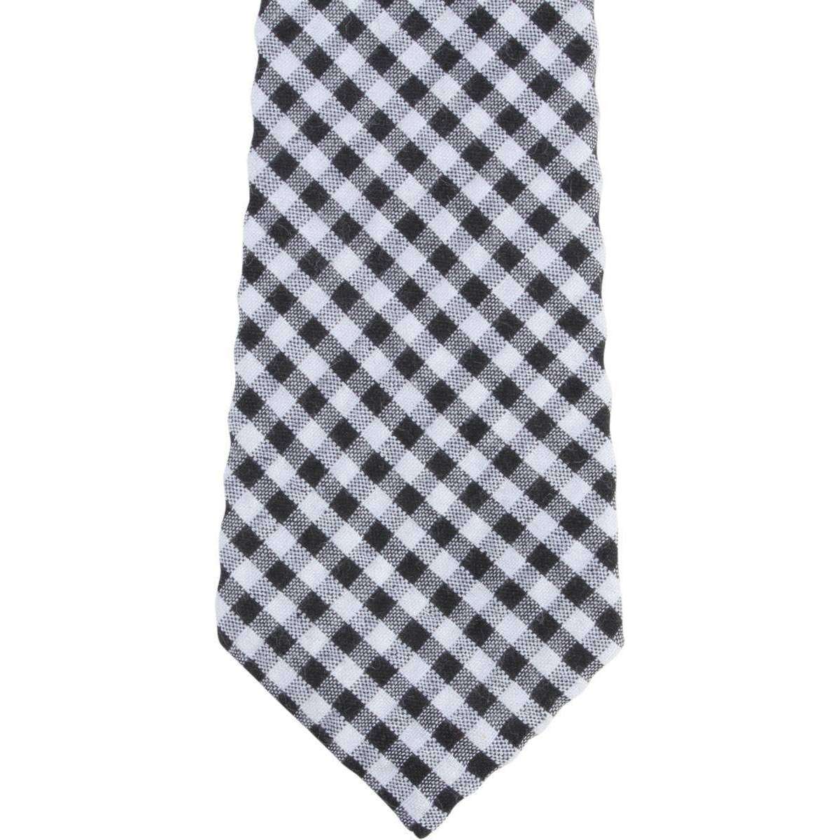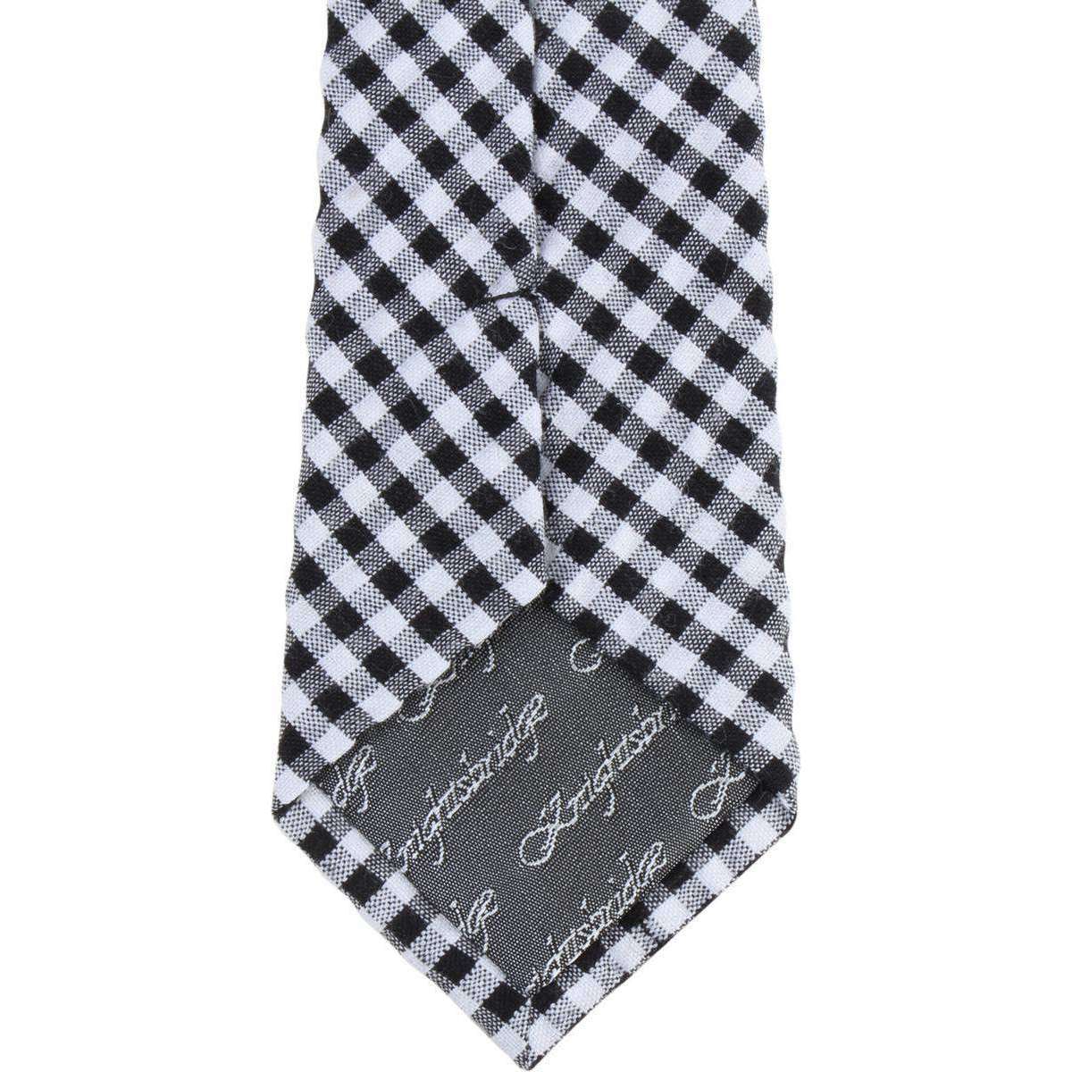 Knightsbridge Neckwear Gingham Checked Cotton Skinny Tie - Black/White