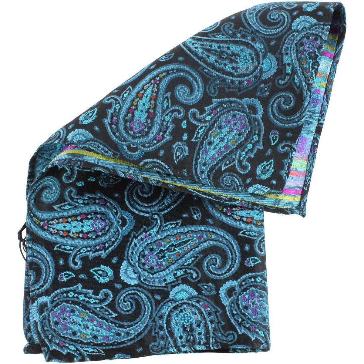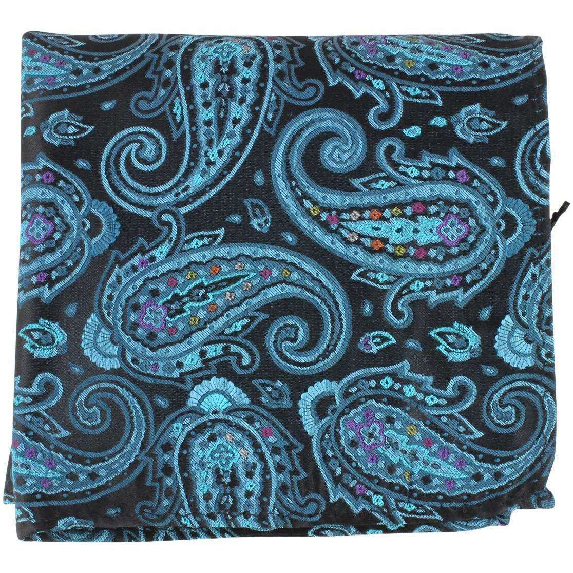Knightsbridge Neckwear Large Paisley Silk Pocket Square - Black/Turquoise