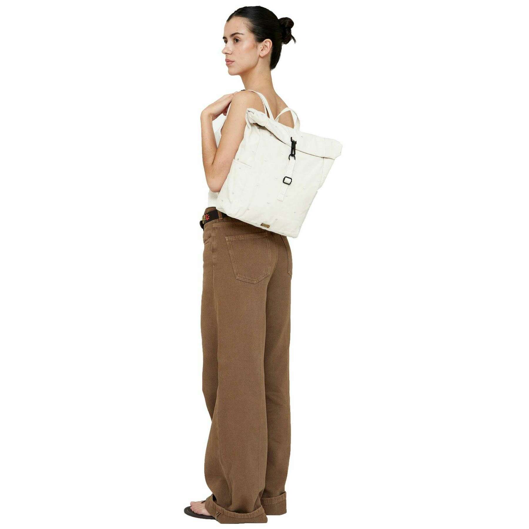Using cream 100% vegan oxford rpet polyester, this arles roll mini backpack by Lefrik is perfect for men or women and a must have. It measures 35cm(height) x 23cm(width) x 12cm(depth). It is recommended to cold wash and air dry to keep this bag in good condition. All the bags come complete with lefrik packaging. The Lefrik Arles Roll Mini Backpack - Ecru Dots Cream is designed for versatility, sustainability and convenience. With a padded compartment for laptops or electronic devices up to 13.6 inches, this roll-top closure also features a zipped inside pocket and mesh organisers for small objects. The back security pocket and external side pockets offer extra space. Lightweight with adjustable cotton handles, this mini roll-top is suitable for various activities, from daily commutes to outdoor adventures.