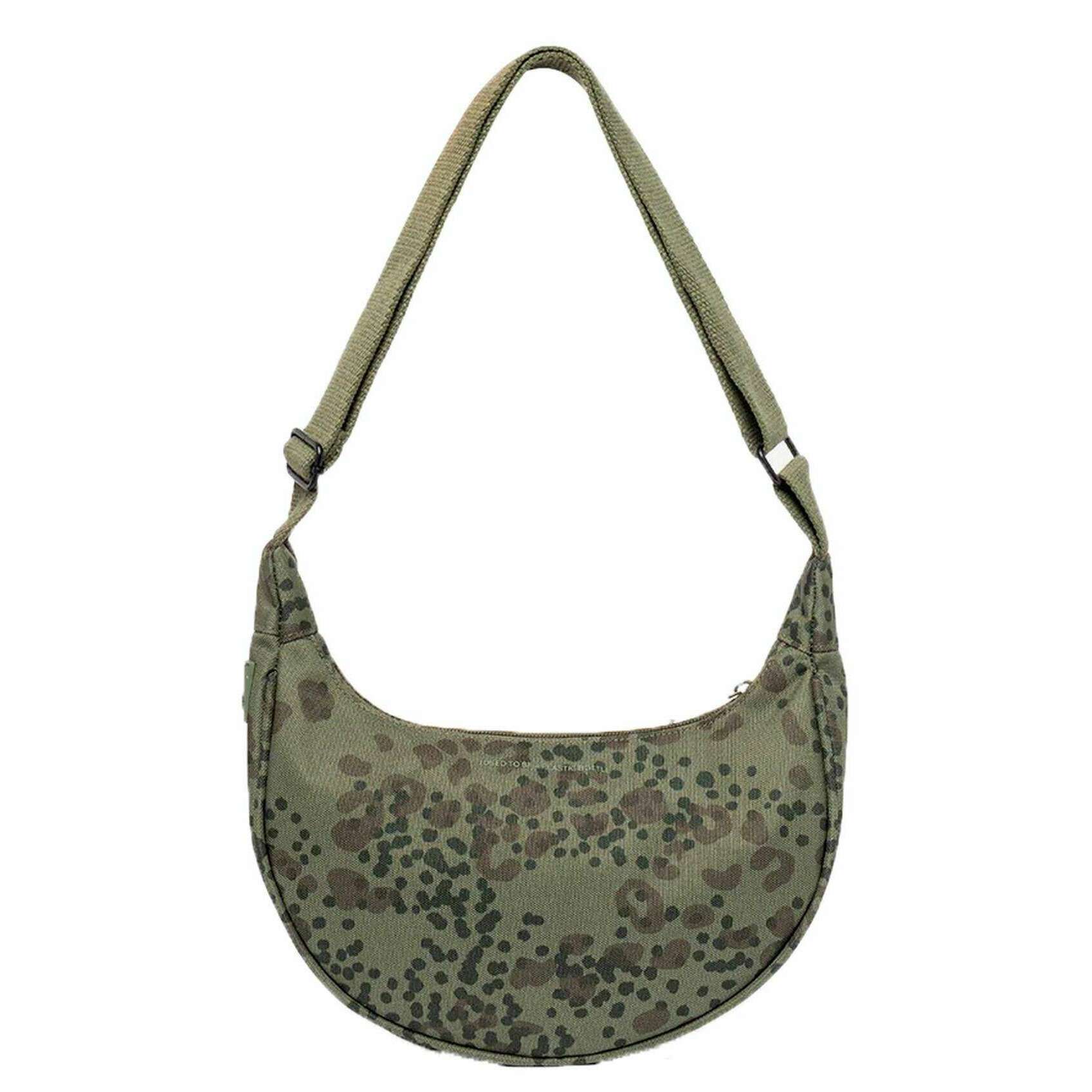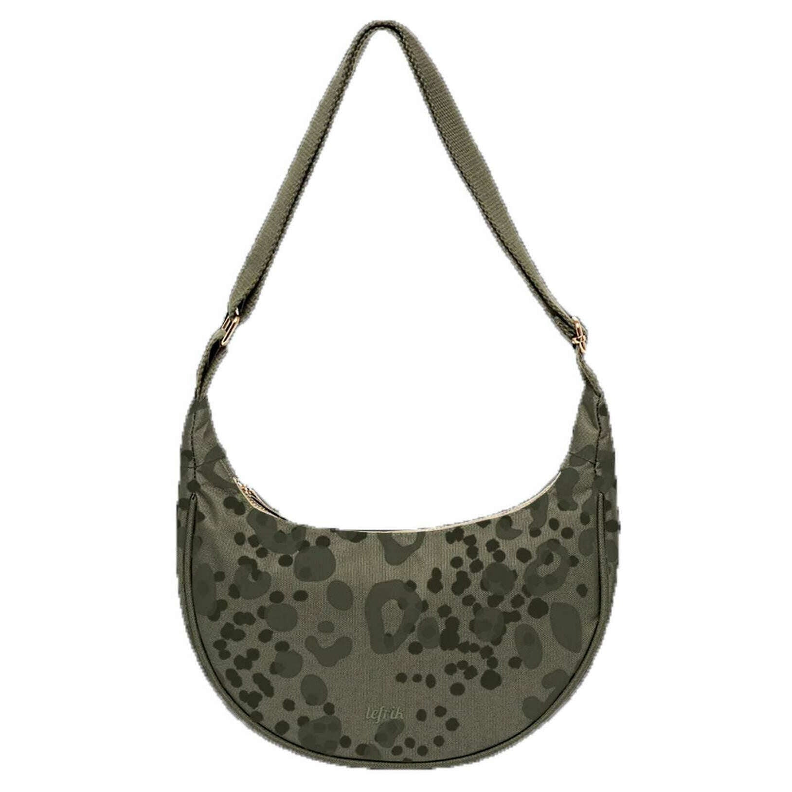 This unisex lua cheetah print shoulder bag by the brand Lefrik is made from 100% vegan oxford rpet fabric and is showcased in green. It measures 21cm(height) x 18.3cm(width) x 5.5cm(depth). All the bags come complete with lefrik packaging. The Lefrik Lua Cheetah Print Shoulder Bag - Green/Black is a stylish and versatile accessory designed to add a pop of colour and functionality to your wardrobe. This half-moon bag with zippered closure also features an inner zipped pocket to keep your belongings safe and accessible. Its sleek and modern design, exuding contemporary elegance with an adjustable cotton webbing strap which allows you to customize the fit to your preference. You can wear it comfortably over the shoulder or across the body for hands-free convenience.