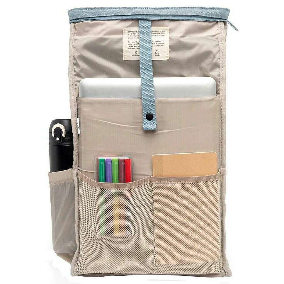 Brought to you by the brand Lefrik, this stone blue unisex roll mini backpack is made from 100% vegan oxford rpet fabric. It measures 35cm(height) x 23cm(width) x 12cm(depth). It is recommended to wash cold and air dry to keep this bag in good condition. All the bags come complete with lefrik packaging. The Lefrik Roll Mini Backpack - Stone Blue is designed for versatility and convenience. With a padded compartment for laptops or electronic devices up to 13.6 inches, this roll-top closure backpack also features a zipped inside pocket and mesh organisers. The back security pocket and external side pockets offer extra space. Lightweight with adjustable cotton handles, this mini roll-top backpack is suitable for various activities, from daily commutes to outdoor adventures. Crafted from RPET materials making this bag vegan and sustainable.