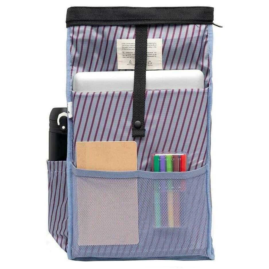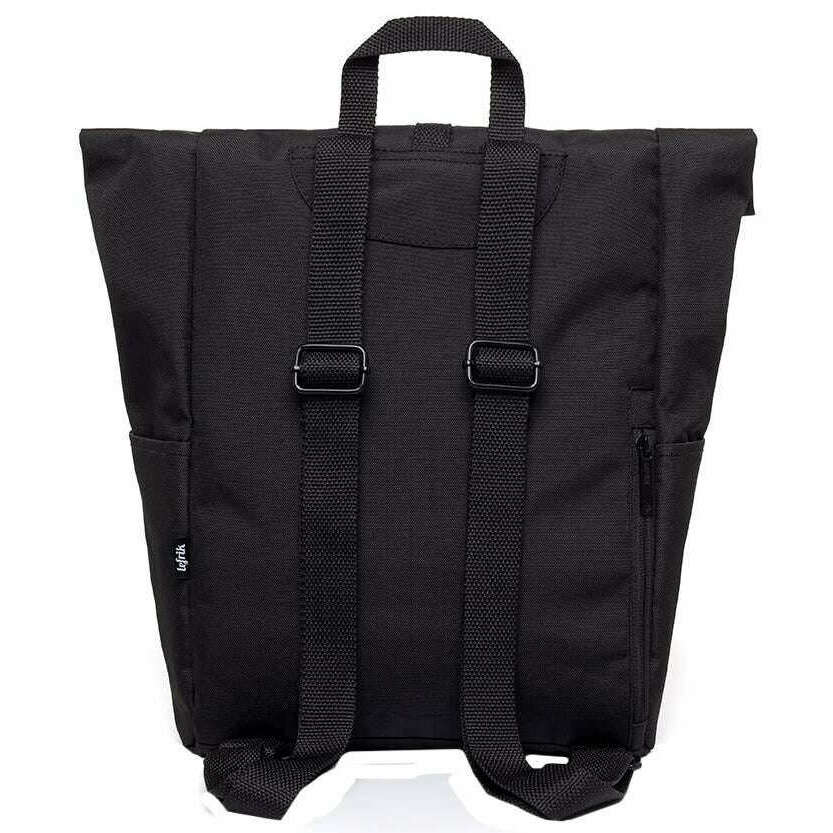 This unisex roll mini stripes backpack by the brand Lefrik is made from 100% vegan oxford rpet fabric and is showcased in black. It measures 35cm(height) x 23cm(width) x 12cm(depth). It is recommended to wash cold and air dry to keep this bag in good condition. All the bags come complete with lefrik packaging. The Lefrik Roll Mini Stripes Backpack - Black is designed for versatility and convenience. With a padded compartment for laptops or electronic devices up to 13.6 inches, this roll-top closure backpack also features a zipped inside pocket and mesh organisers. The back security pocket and external side pockets offer extra space. Lightweight with adjustable cotton handles, this mini roll-top backpack is suitable for various activities, from daily commutes to outdoor adventures. Crafted from RPET materials making this bag vegan and sustainable.