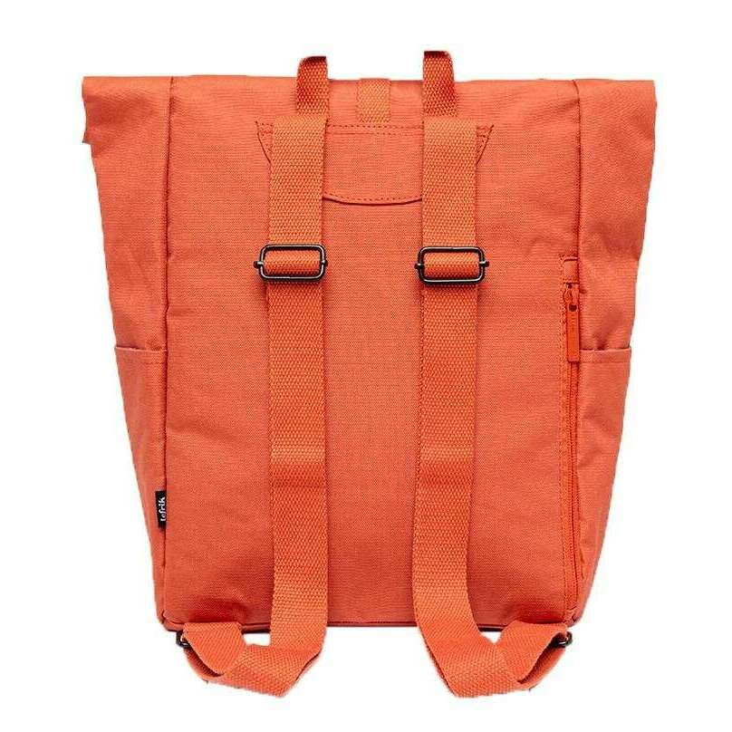 Using orange 100% recycled oxford rpet fabric, this roll mini stripes backpack by Lefrik is perfect for men or women and a must have. It measures 35cm(height) x 23cm(width) x 12cm(depth). All the bags come complete with lefrik packaging. The Lefrik Roll Mini Stripes Backpack - Orange is designed for versatility and convenience. With a padded compartment for laptops or electronic devices up to 13.6 inches, this roll-top closure backpack also features a zipped inside pocket and mesh organizers for small objects. The back security pocket and external side pockets offer extra space. Lightweight with adjustable cotton handles, this mini roll-top backpack is suitable for various activities, from daily commutes to outdoor adventures. Crafted from RPET materials making this bag vegan and sustainable.