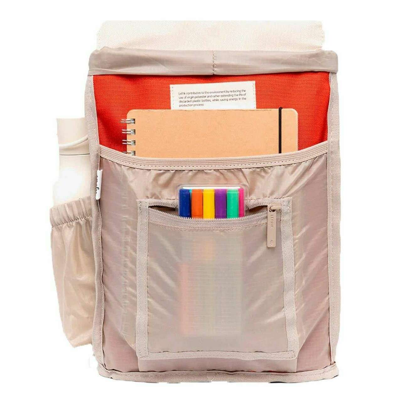This scout mini backpack for men or women is fashioned by the brand Lefrik in a red colour and is made from 100% vegan oxford rpet fabric. It measures 30cm(height) x 22cm(width) x 13cm(depth). All the bags come complete with lefrik packaging. The Lefrik Scout Mini Backpack - Cherry Block Red is extremely practical and comfortable. This mini version of the iconic Scout model features a large main compartment and a separate pocket for notebooks or small electronic devices. Perfect for school, work or play, this backpack is lightweight and water resistant. The quick access pocket on the flap and security pocket on the back allow you to store small items comfortably. With just the right amount of space, this vegan and sustainable backpack is designed for convenience.