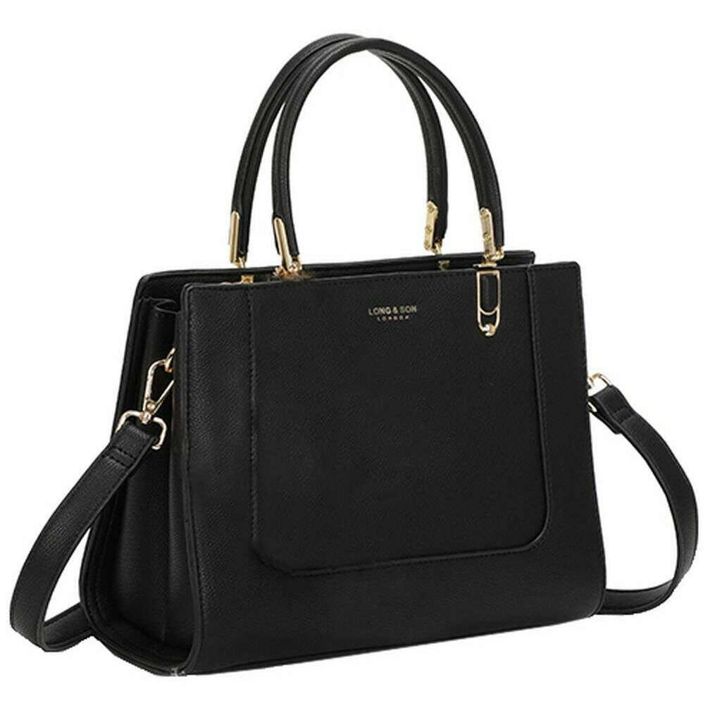 Introducing this women's crossbody handbag by Long and Son, it is manufactured from 100% polyurethane in a black colour. It measures 20cm(height) x 27cm(width) x 9cm(depth). All the bags come complete with long & son packaging. The Long and Son Crossbody Handbag - Black sophisticated and girly is a must have if you are looking for a chic everyday bag to dress up any attire. Featuring two separate compartments for organisation and one open and one zipped internal pocket for more storage. The zipped top ensures a secure wear to ensure your belongings are kept safe when out and about. This bag doubles up as a hand bag and a crossbody bag with the simple attachment of the adjustable strap.