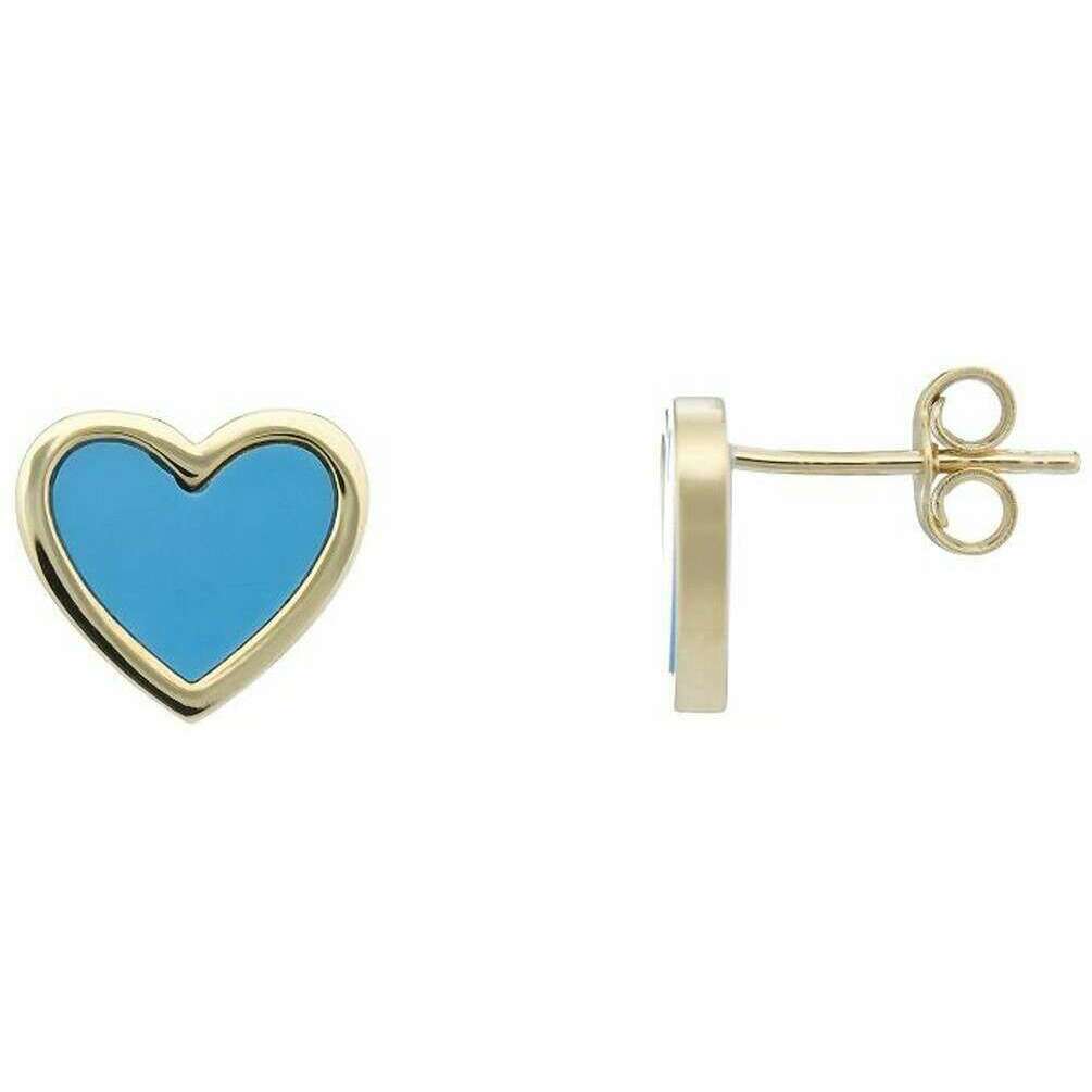 These women's heart earrings by the brand Mark Milton are made from 9ct gold and are showcased in gold. It measures 0.9cm(height) x 1cm(width) x 0.2cm(depth). All the earrings come complete with mark milton packaging. The Mark Milton Heart Earrings - Yellow Gold/Turquoise Blue are a beautiful pair of gold earrings that feature a blue stone heart design. This pair of elegant earrings are great for gifting to those you love, or a perfect staple to have in your wardrobe.