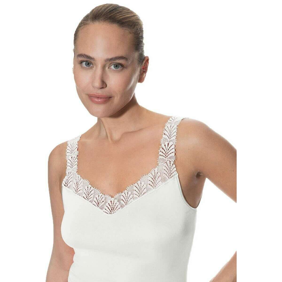 Introducing this women's emotion elegance vest by Mey, it is manufactured from 50% viscose, 46% polyamide and 4% elastane in a champagne colour. Also the champagne vest is designed in a plain pattern, It is recommended to machine wash at 30 degrees to keep this vest in good condition. All the vests come complete with mey packaging. The Mey Emotion Elegance Vest - Champagne is the perfect intricately detailed vest to add to your collection for a classic and refined look. Featuring a slim fit, a subtle V-shaped necklace, a rounded back, lace detailing on the neckline and straps, wide straps and a flowing fabric. All of these elegant details come together to create the perfect tank top with its viscose material which regulates moisture that ensures the most comfortable breathable wear. This high-quality material is Oeko-Tex-Standard 100 certified.