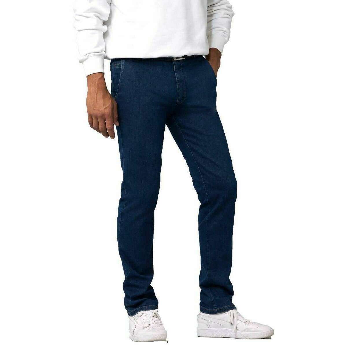 These roma regular denim chinos for men are fashioned by the brand Meyer in a blue colour and are made from 97% organic cotton, 6% polyester and 1% elastane. Also the blue stone trousers are designed in a plain pattern, All the trousers come complete with meyer tags. The Meyer Roma Regular Denim Chinos - Blue Stone are sure to impress without compromising on style or comfort, the slim silhouette, in a regular fit, has innovative T400 stretch fibres which are shape retaining and hard wearing. The pure organic cotton used is super soft on your skin whilst remaining breathable, perfect for providing you with the utmost comfort. The elasticated waistband, waistband hook with securing button, zip safety, rounded French pockets, additional coin pocket and buttoned back pockets are all features you need in a pair of denim chinos. The high quality interior design with colourful woven pocket pouches is also sure to impress.