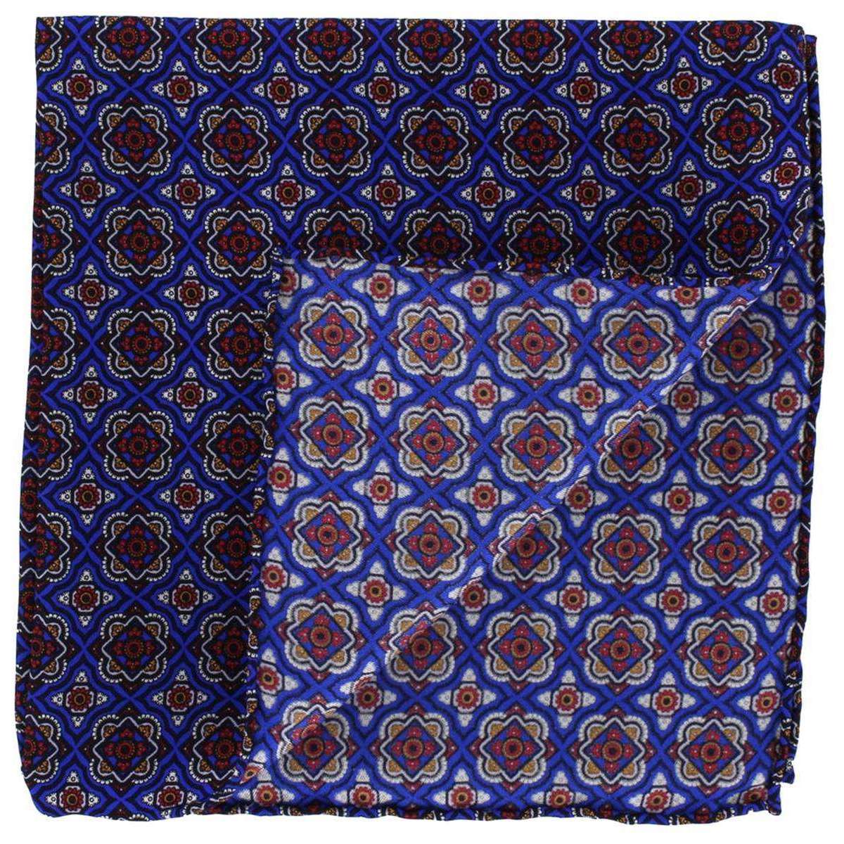 Michelsons of London Bold Medallion Silk Pocket Square - Blue