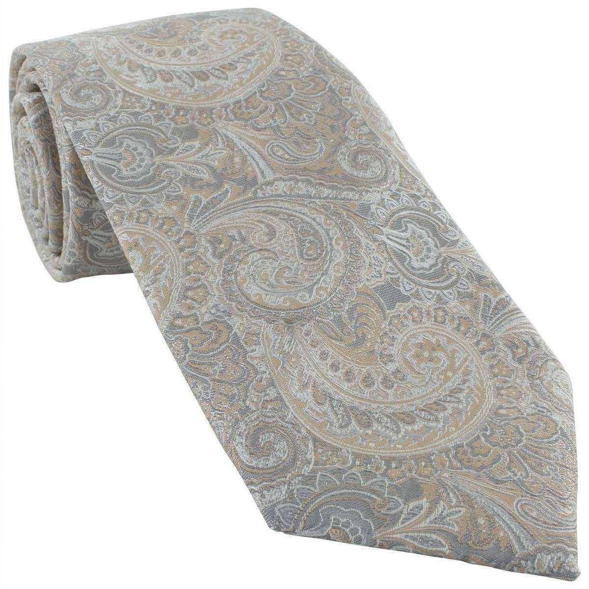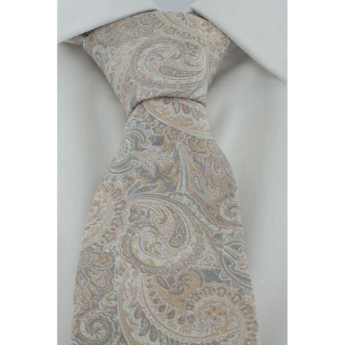 Michelsons of London Elegant Paisley Tie and Pocket Square Set - Gold/Ecru