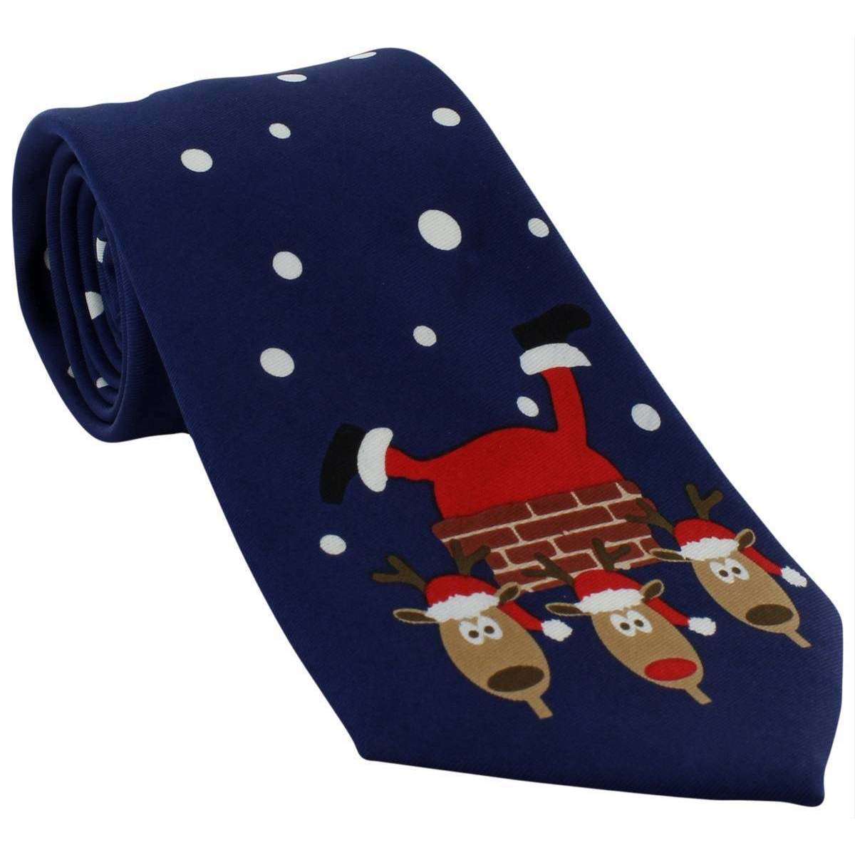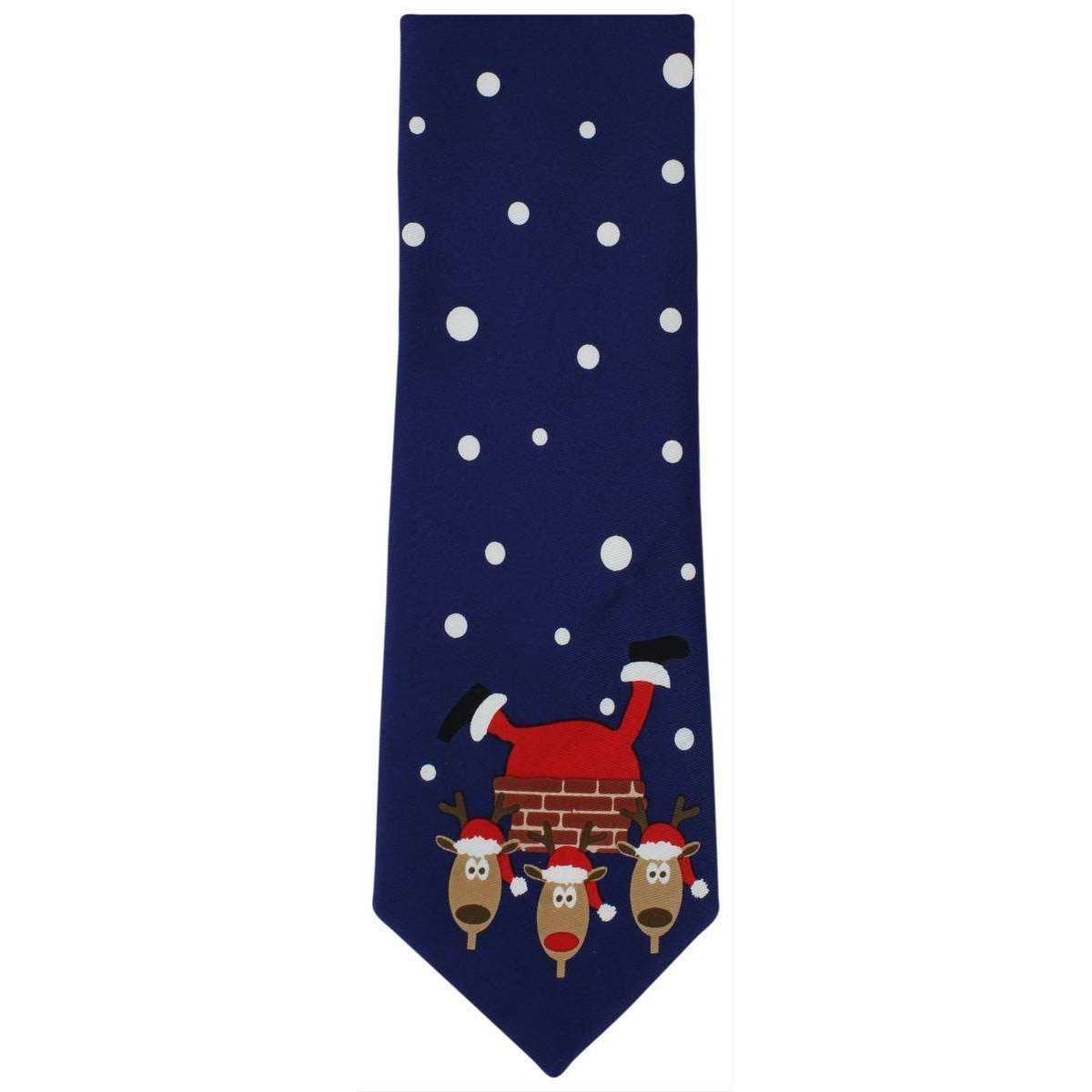 Michelsons of London Father Christmas Chimney Scene Polyester Tie - Navy/Red