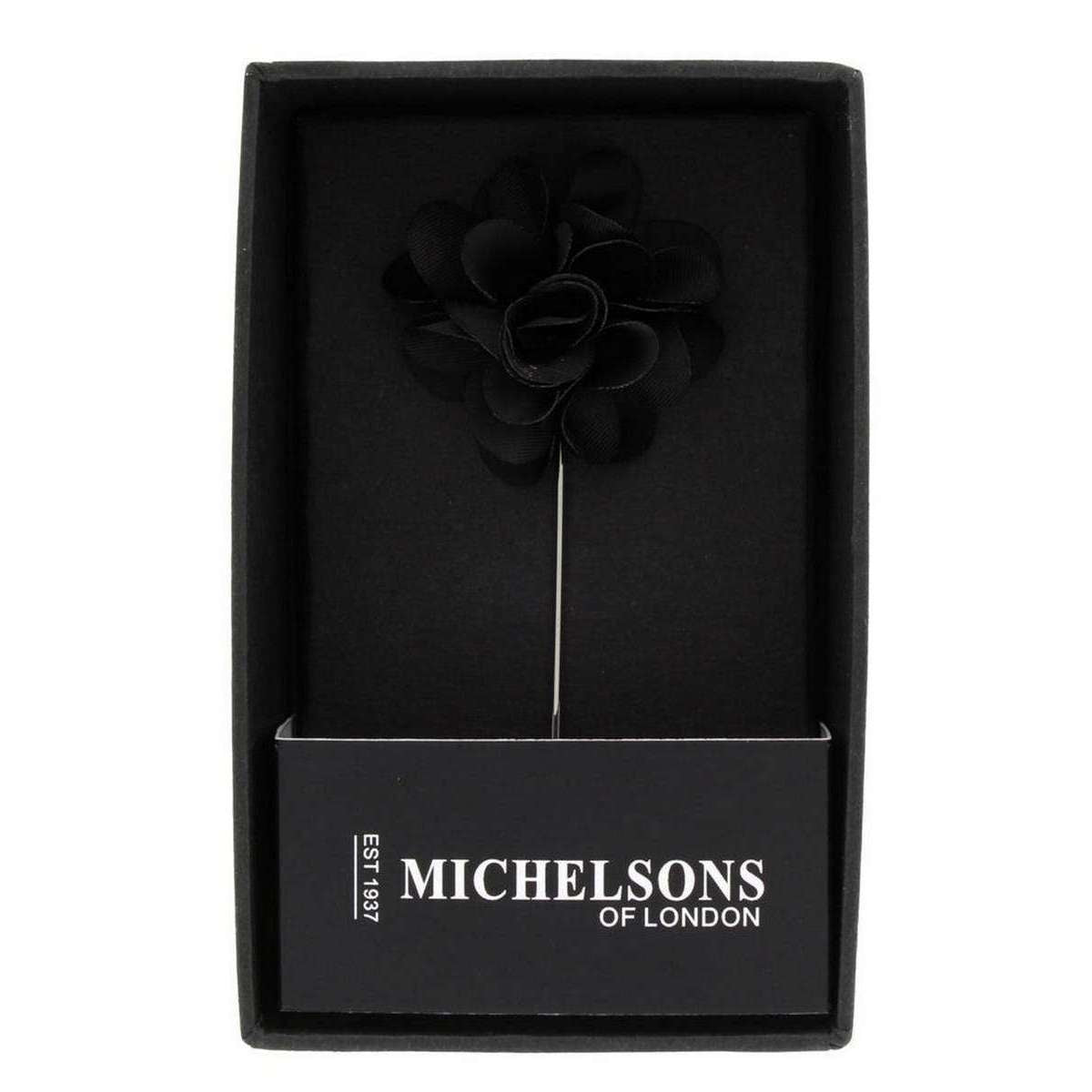 Introducing this men's flower lapel pin by Michelsons of London, it is manufactured from 100% polyester in a black colour. It measures flower: 4cm(height) x 4cm(width); pin: 9cm(length). Also the black lapel pin is designed in a plain pattern, All the lapel pins come complete in a stylish michelsons of london gift box. The Michelsons of London Flower Lapel Pin - Black is certain to add a touch of flair to your wear no matter the occasion, giving your attire the finishing touch it deserves.