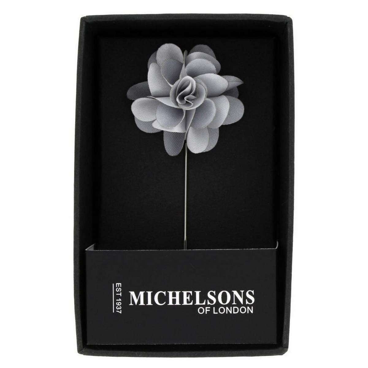 This men's flower lapel pin by the brand Michelsons of London is made from 100% polyester and is showcased in silver. It measures flower: 4cm(height) x 4cm(width); pin: 9cm(length). Also the silver lapel pin is designed in a plain pattern, All the lapel pins come complete in a stylish michelsons of london gift box. The Michelsons of London Flower Lapel Pin - Silver is certain to add a touch of flair to your wear no matter the occasion, giving your attire the finishing touch it deserves.
