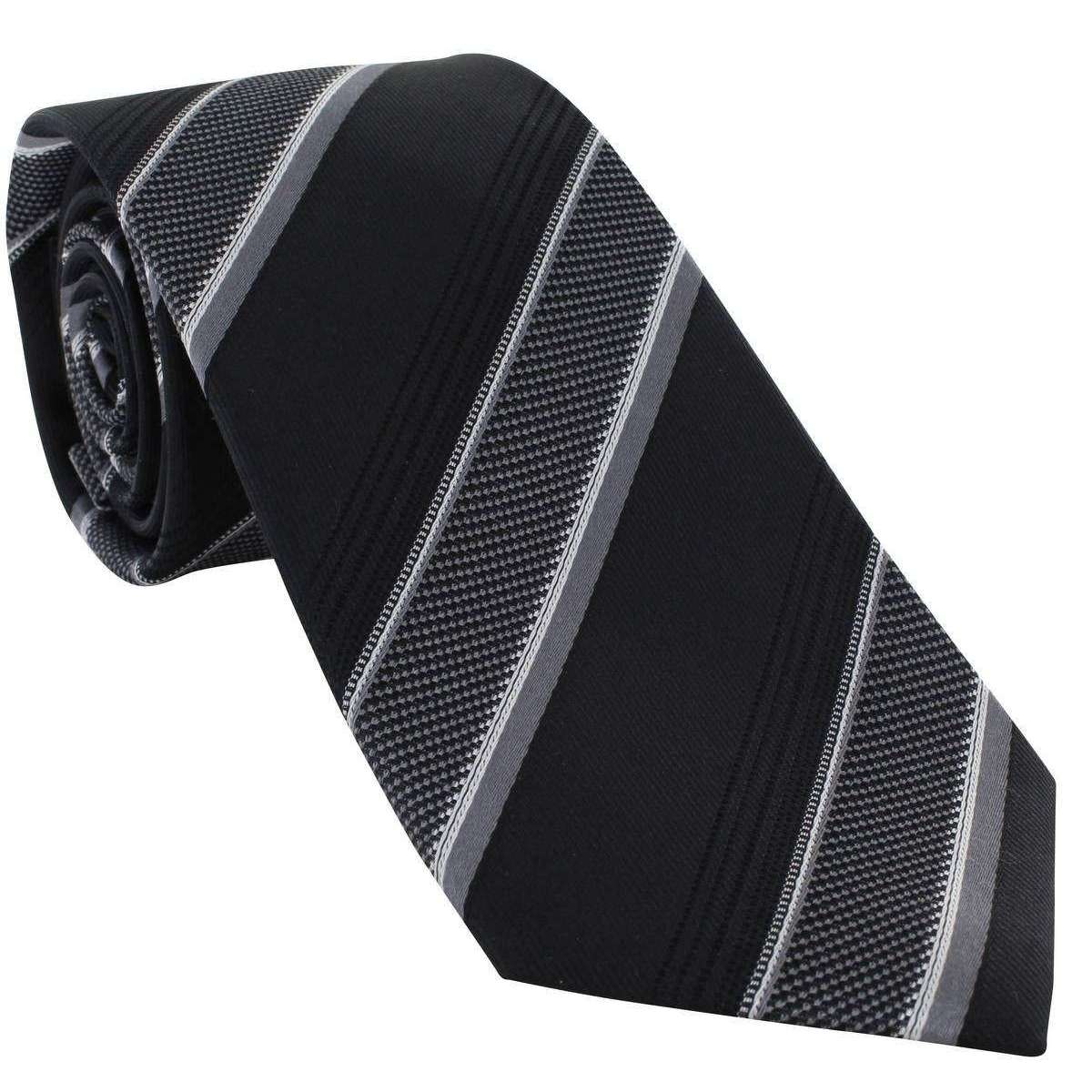 Michelsons of London Large Textured Block Stripe Silk Tie - Black