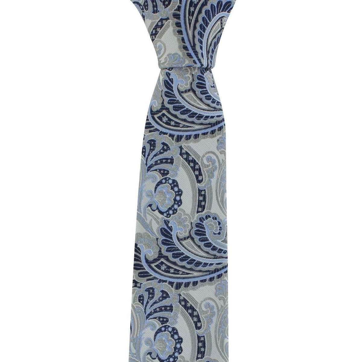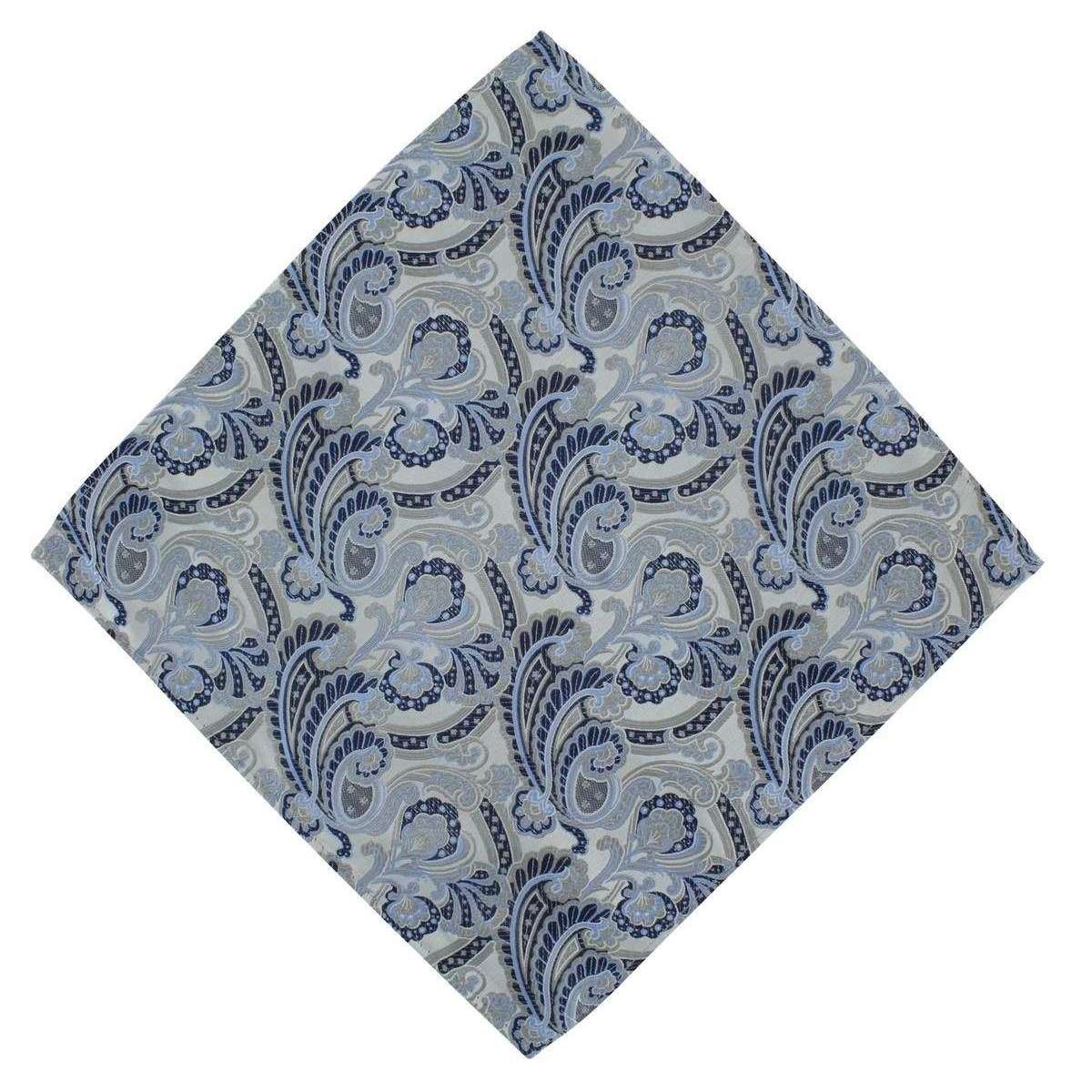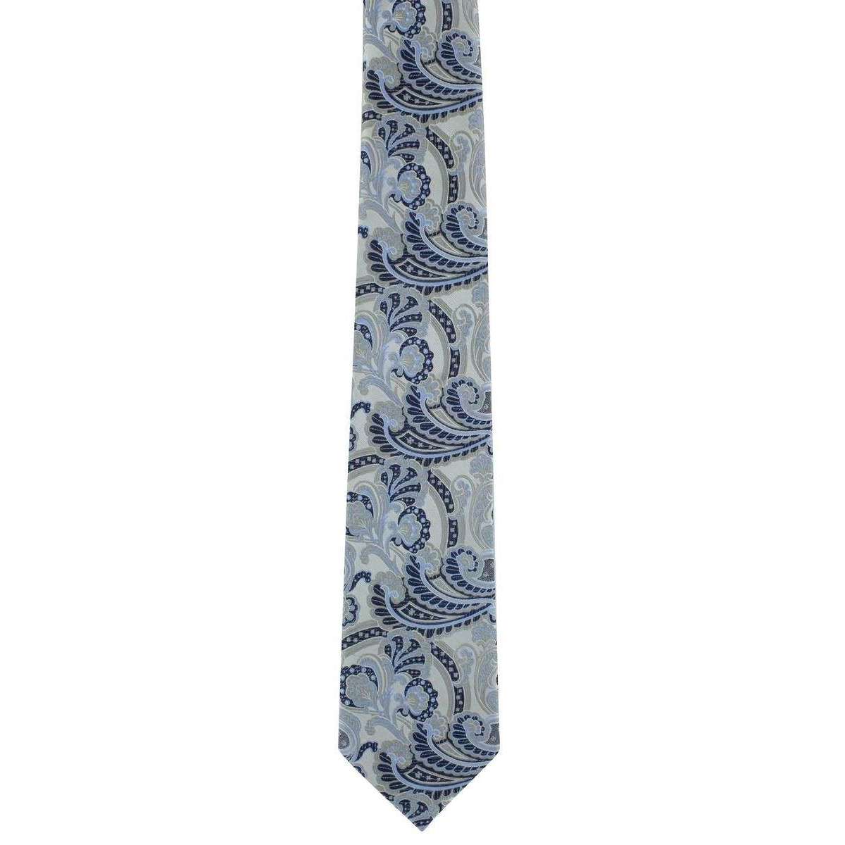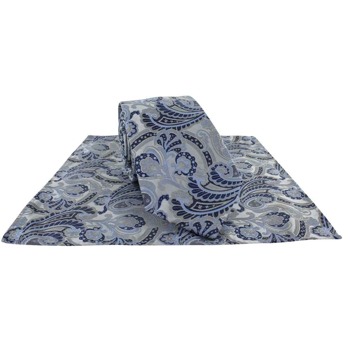 Michelsons of London Ornamental Paisley Polyester Tie and Pocket Square Set - Grey/Blue
