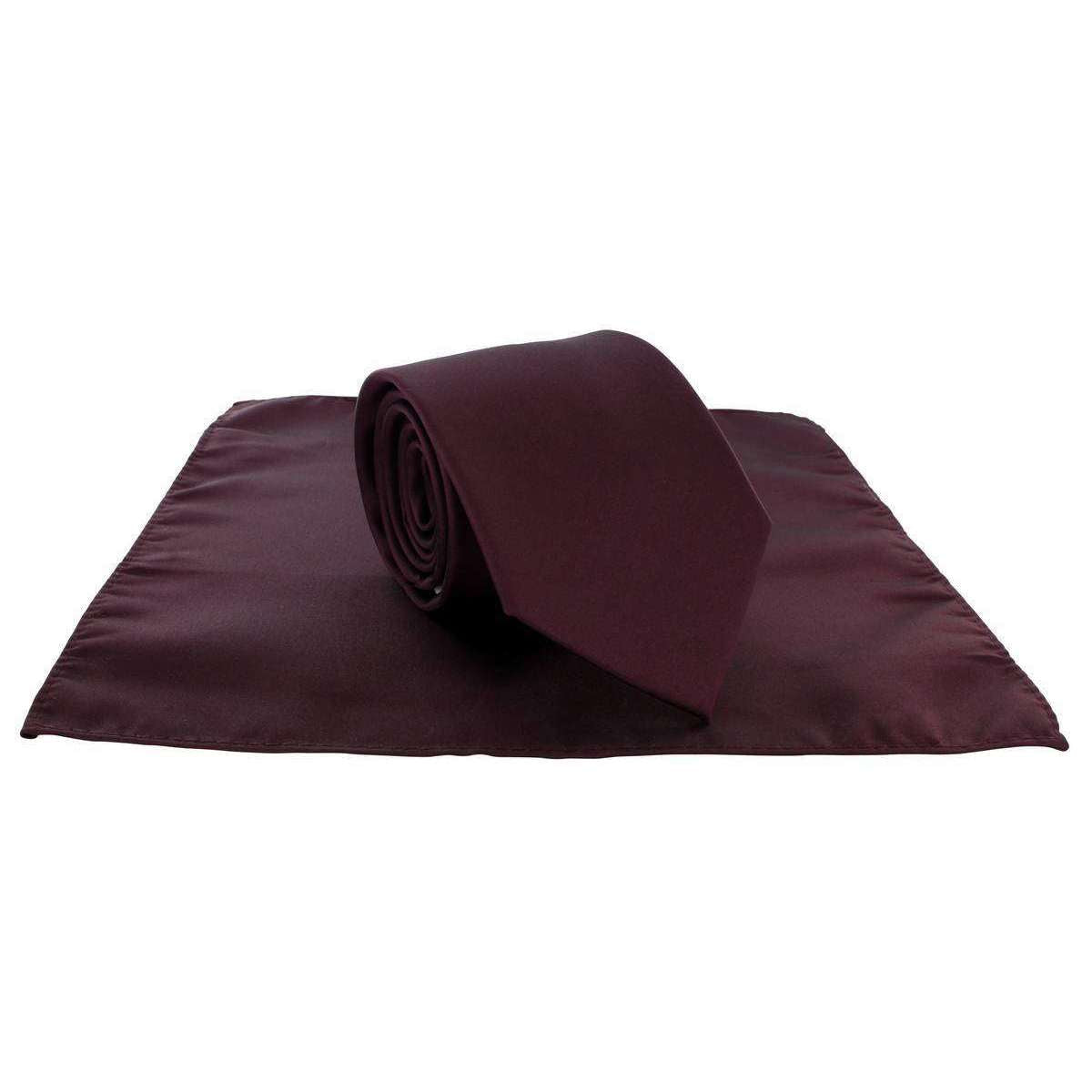 Michelsons of London Plain Polyester Pocket Square and Tie Set - Wine