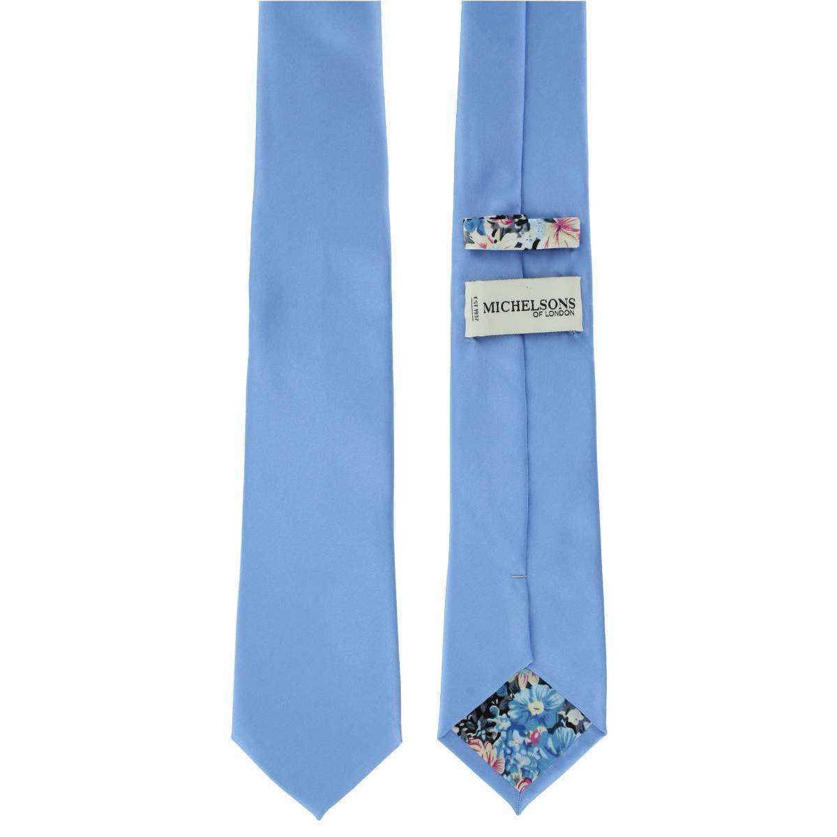 Michelsons of London Plain Tie and Contrast Floral Pocket Square Set - Light Blue