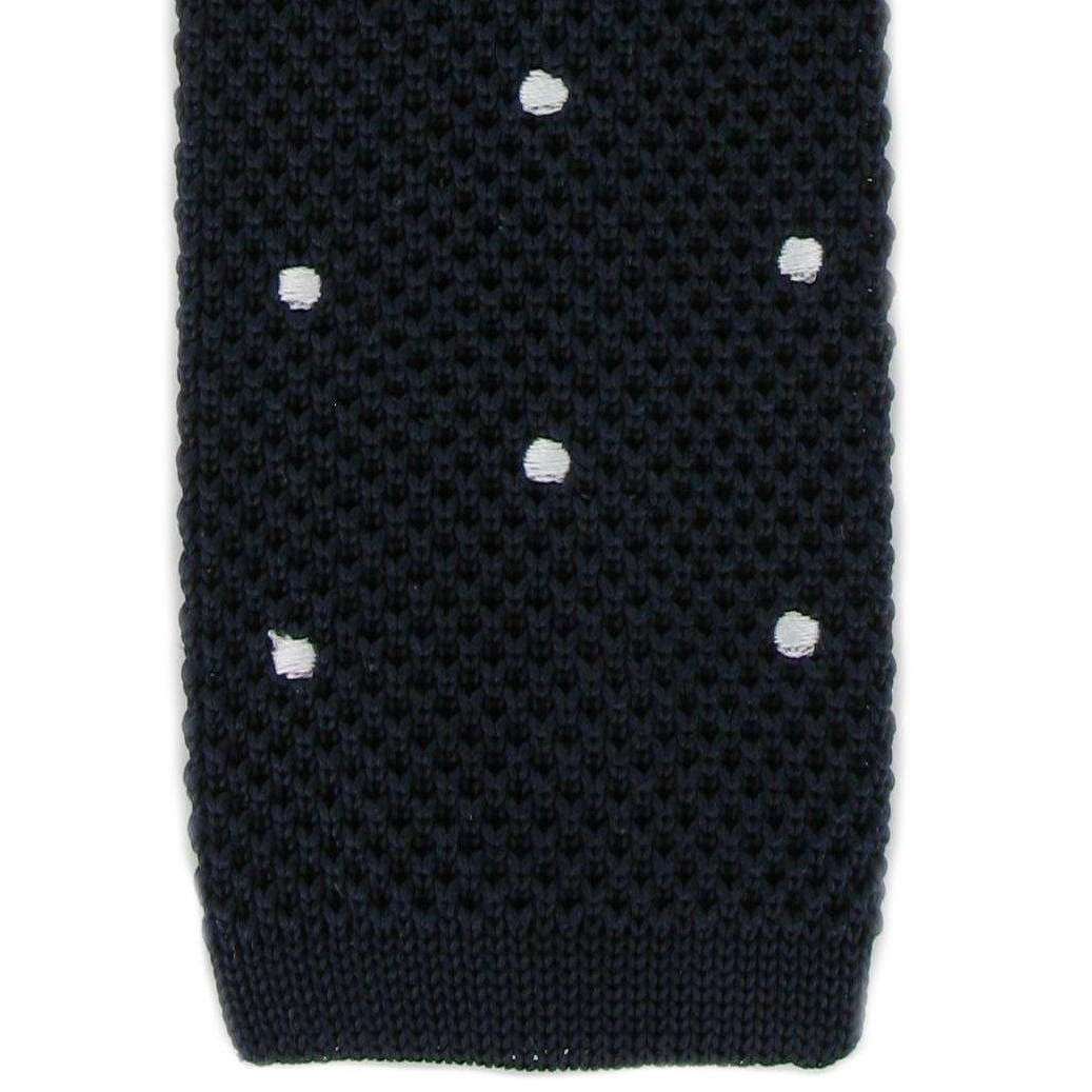 This luxury spot design tie by Michelsons of London is beautifully knitted from 100% silk. It features a straightforward white spot pattern on a navy knitted textured background creating a simple but beautiful design. This tie is 6cm in width making it skinnier than your average tie. This knitted silk tie is also available black with white spots, brown with blue spots, charcoal with black spots, green with navy spots, navy with blue spots, navy with red spots, purple with blue spots, red with white spots and wine with red spots.