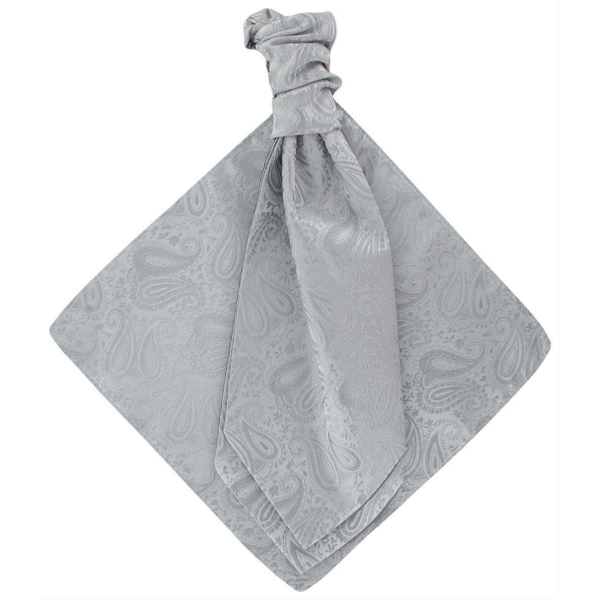 Michelsons of London Tonal Paisley Cravat and Pocket Square Set - Silver