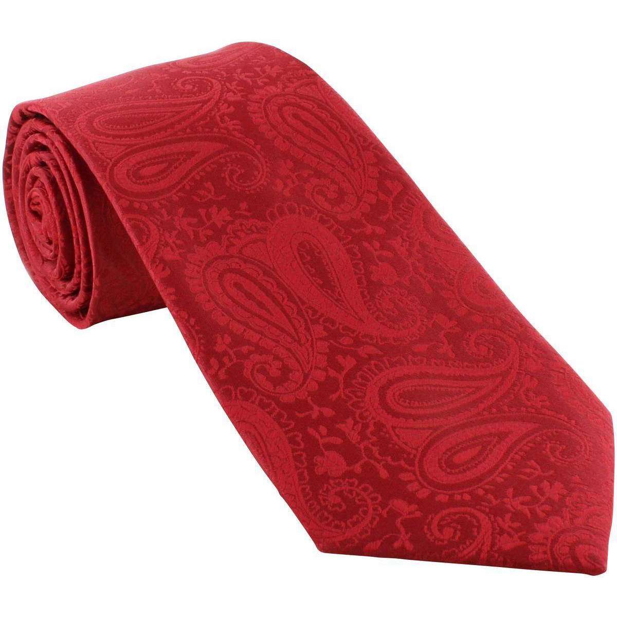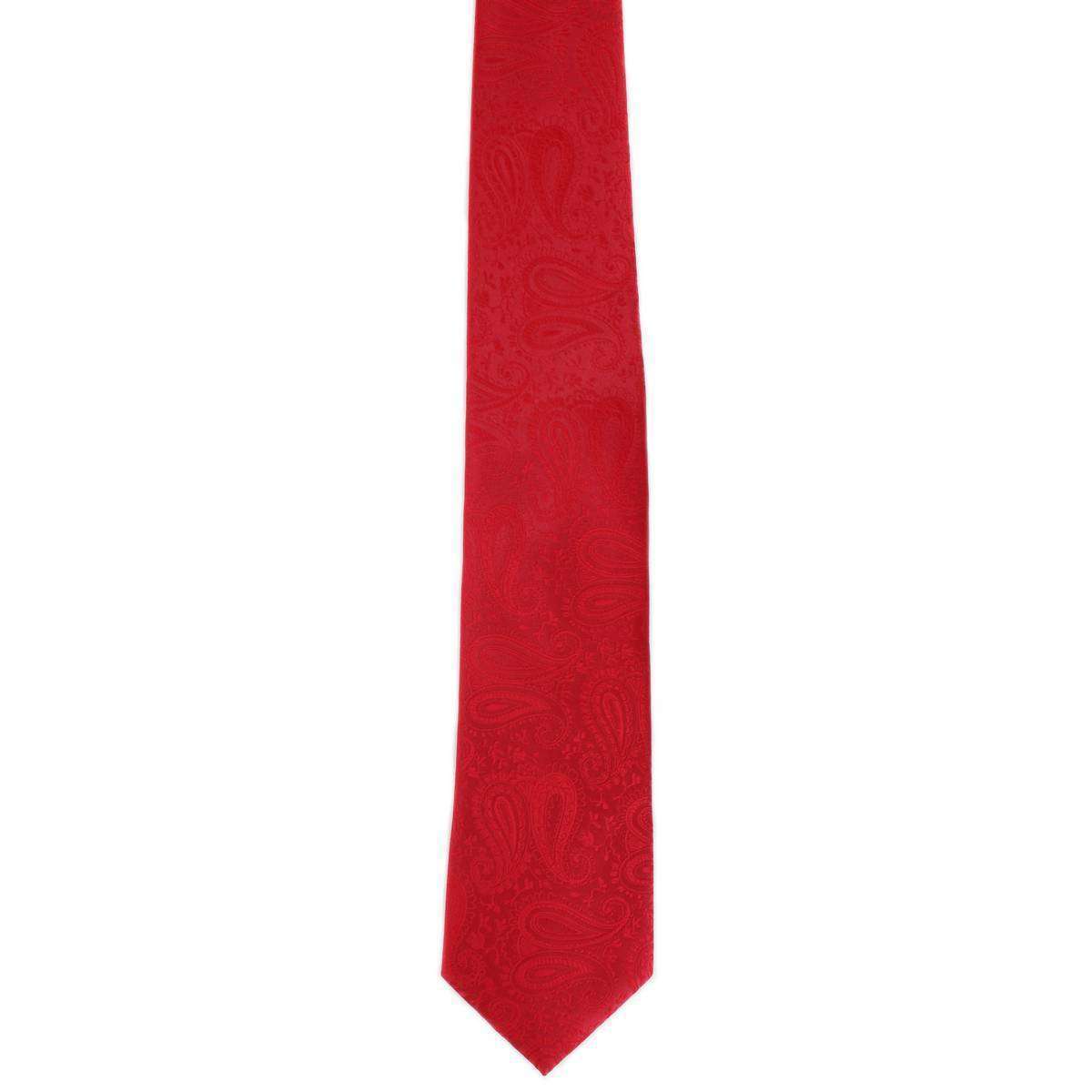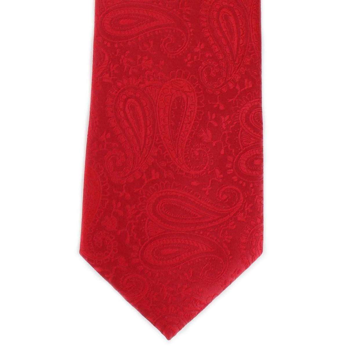 Michelsons of London Tonal Polyester Paisley Pocket Square and Tie Set - Bright Red