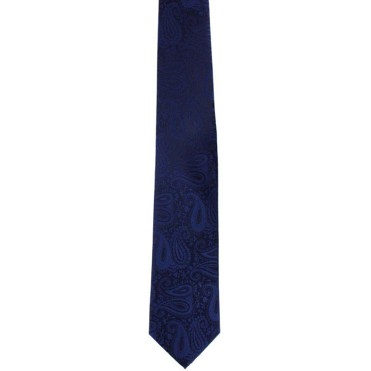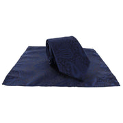 Michelsons of London Tonal Polyester Paisley Pocket Square and Tie Set - Navy