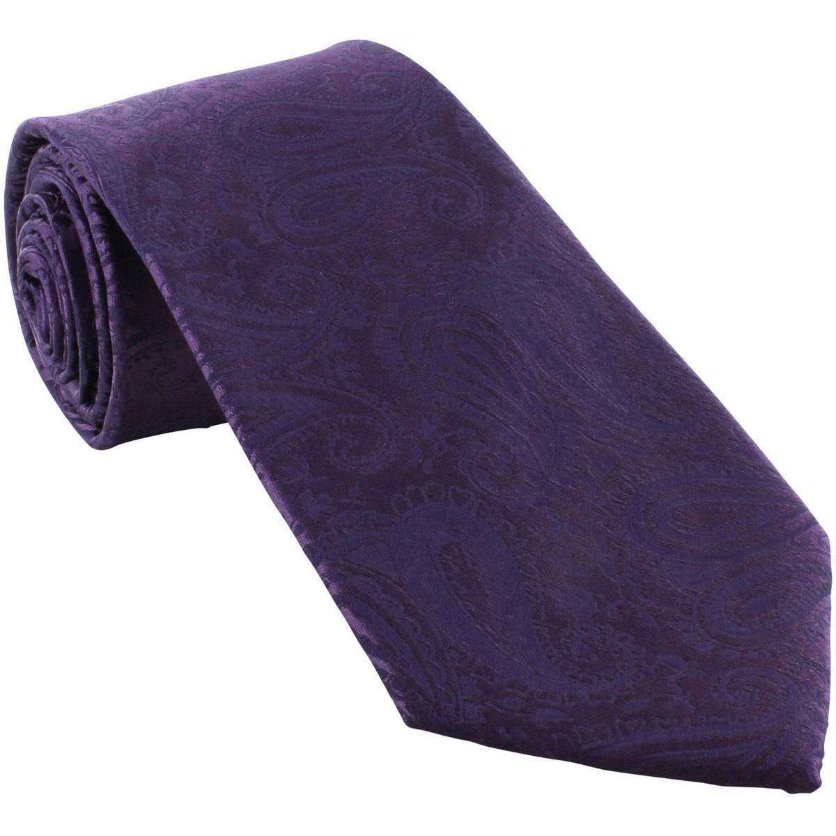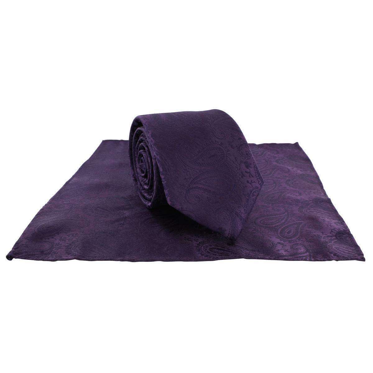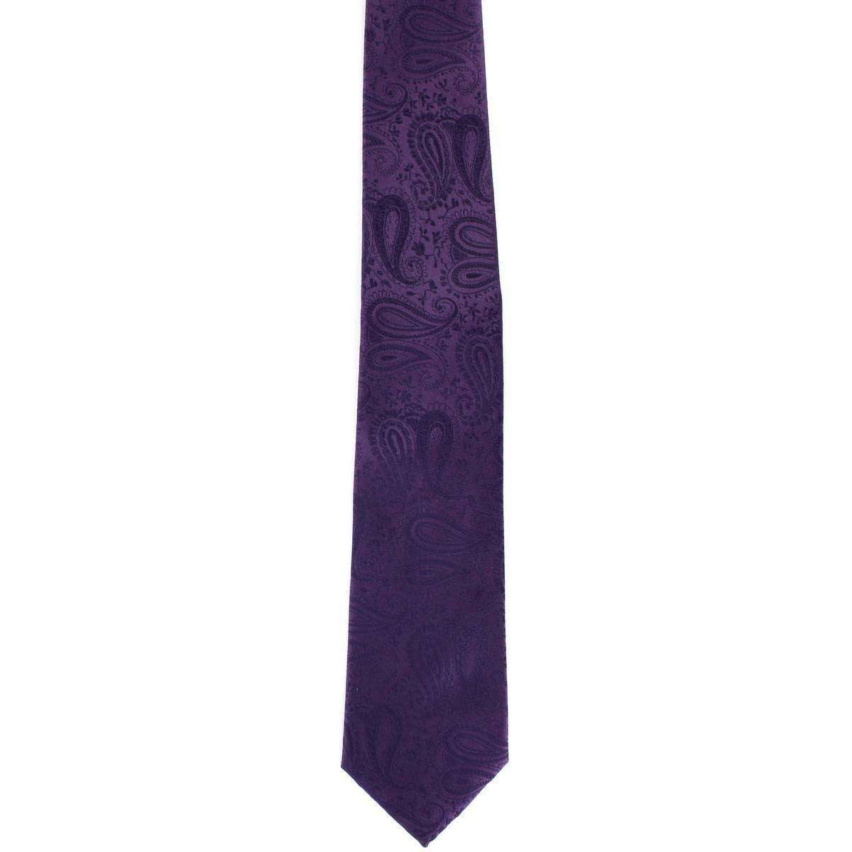 Michelsons of London Tonal Polyester Paisley Pocket Square and Tie Set - Purple