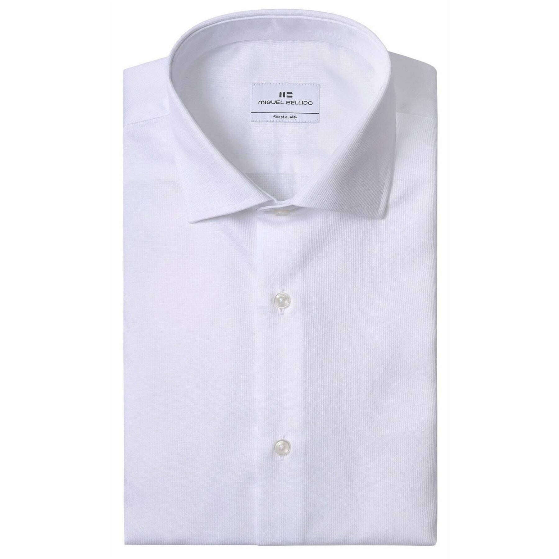 Using white 100% cotton, this classic regular long sleeve shirt by Miguel Bellido is perfect for men and a must have. Also the white shirt is designed in a plain pattern, All the shirts come complete in a miguel bellido box. The Miguel Bellido Classic Regular Long Sleeve Shirt - White will allow you to elevate your formal wear in a sophisticated and timeless fashion. Perfect for those who appreciate subtle details that contribute to refined style. This long sleeve shirt offers a relaxed fit and has been made with a breathable and premium fabric that guarantees a flawless wear and showcases a classy textured finish. Its design displays traditional tailoring to ensure adaptability and features a mixed round cuff ensuring you can adapt to different occasions.