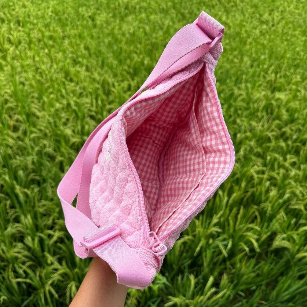 Manufactured from 100% cotton is this pink women's candy mini shoulder bag by the designer Moon Nude. It measures 17cm(height) x 28cm(width) x 10cm(depth). It is recommended to wash by hand in cold water with a mild detergent, or maching wash inside out on a delicate cycle. to keep this bag in good condition. All the bags come complete with moon nude packaging. The Moon Nude Candy Mini Shoulder Bag - Pink features a beautiful handmade quilted design. Perfect for on the go, whether that s for a special occasion or everyday use. This shoulder bag has a zip closure for safety, an adjustable strap for comfort and interior pockets for convenience.