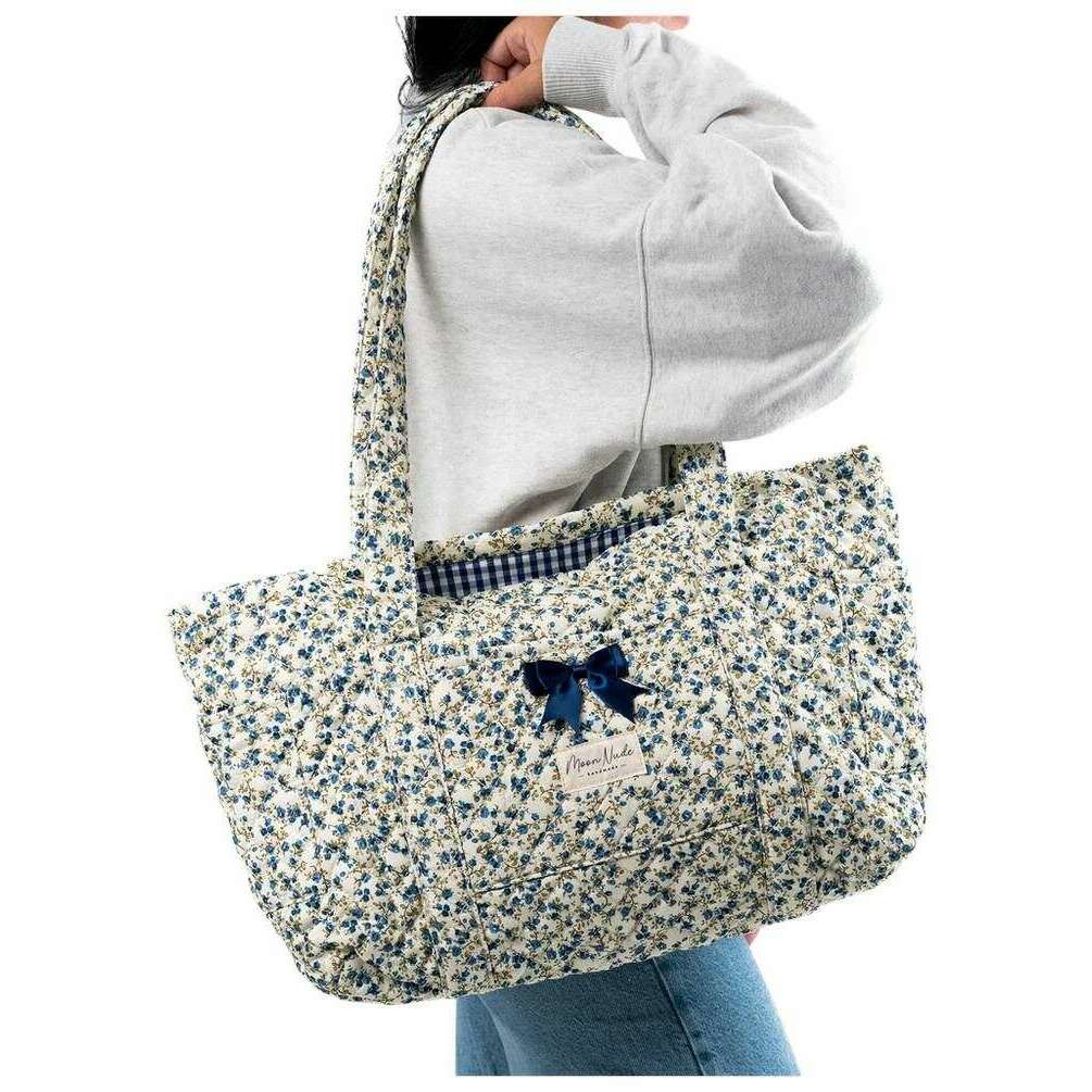 This women's spring tote bag has been made from 100% cotton, featured in a white colour and is from the brand Moon Nude. It measures 30cm(height) x 42cm(width) x 12cm(depth). It is recommended to wash by hand in cold water with a mild detergent, or maching wash inside out on a delicate cycle. to keep this bag in good condition. All the bags come complete with moon nude packaging. The Moon Nude Spring Tote Bag - White/Blue/Green features a beautiful handmade quilted design. Perfect for on the go, whether that s for travelling or everyday use. This tote bag has a zip closure for safety, long shoulder straps for comfort and a spacious interior for all your belongings.