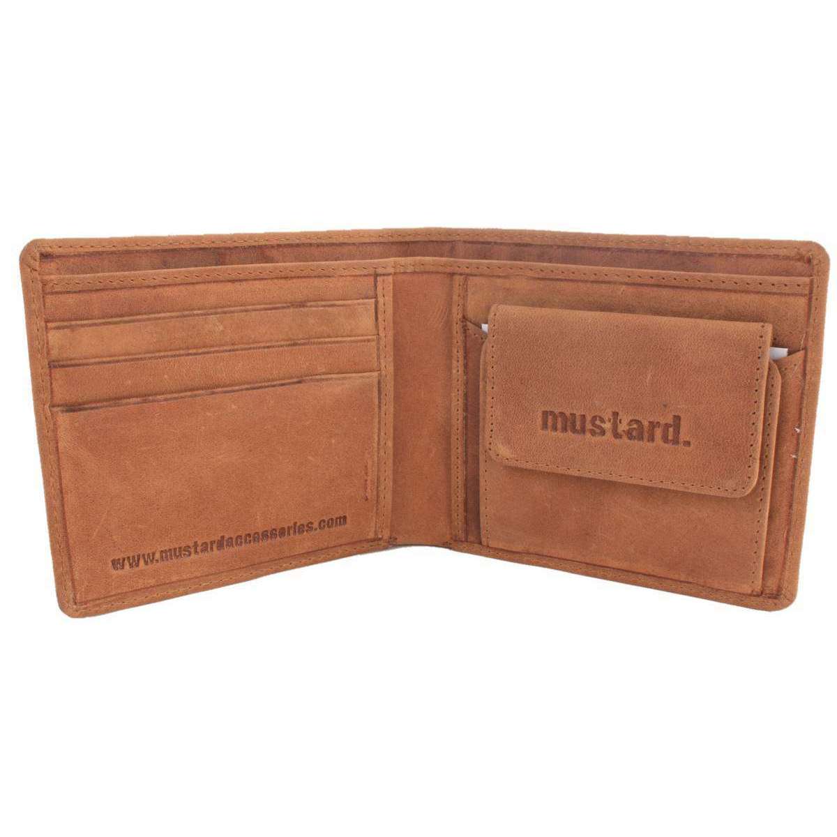 Using brown 100% leather, this ring bifold and coin wallet by Mustard is perfect for men and a must have. It measures 9.5cm(height) x 11cm(width) x 2cm(depth). All the wallets come complete with mustard packaging. The Mustard Ring Bifold and Coin Wallet - Brown has three credit card slots and a single notes compartment. It also has a coin pouch.