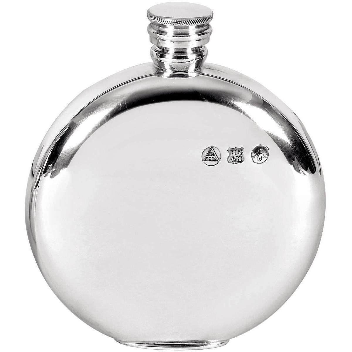 Orton West 6oz Round Pewter Hip Flask - Silver