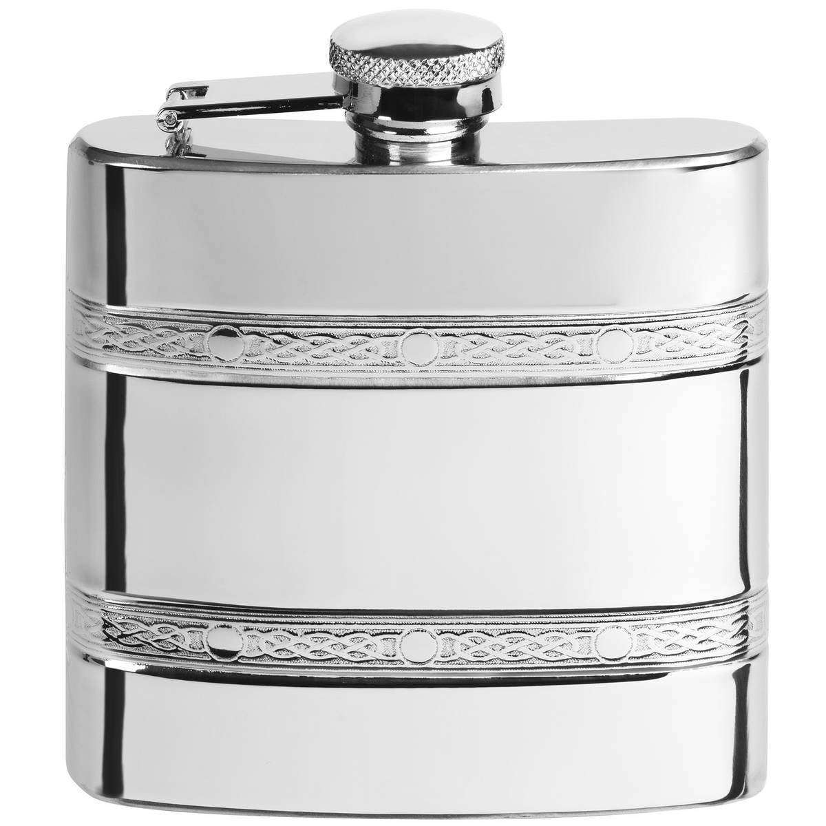 Beautifully detailed with glorious Celtic bands this 6oz hip flask is a must have for your collection. Whether it be at formal occasions or other events this hip flask is an essential piece that will make your favourite drink easily accessible. It has been masterfully crafted from the finest pewter and features a captive top ensuring your liquor is sealed inside, preventing any accidental spillages. Coming complete in a Orton West presentation box it would make a terrific choice of gift.