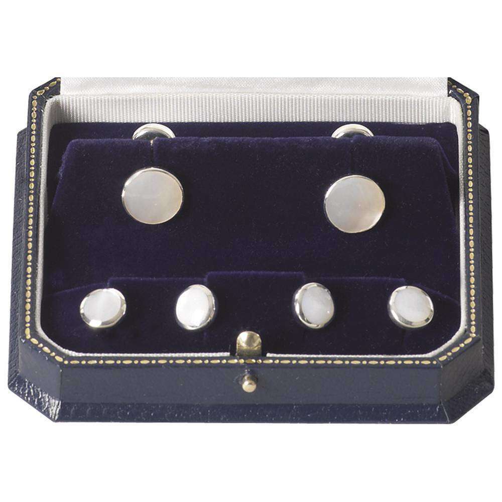 Orton West Mother of Pearl Cufflinks and Shirt Stud Set - Silver/White