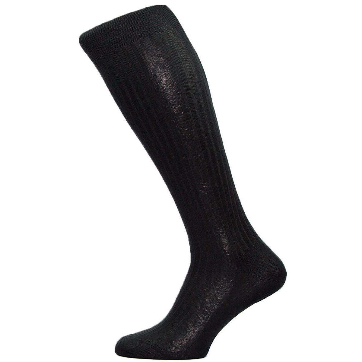 Pantherella Baffin Rib Over the Calf Silk Socks - Black