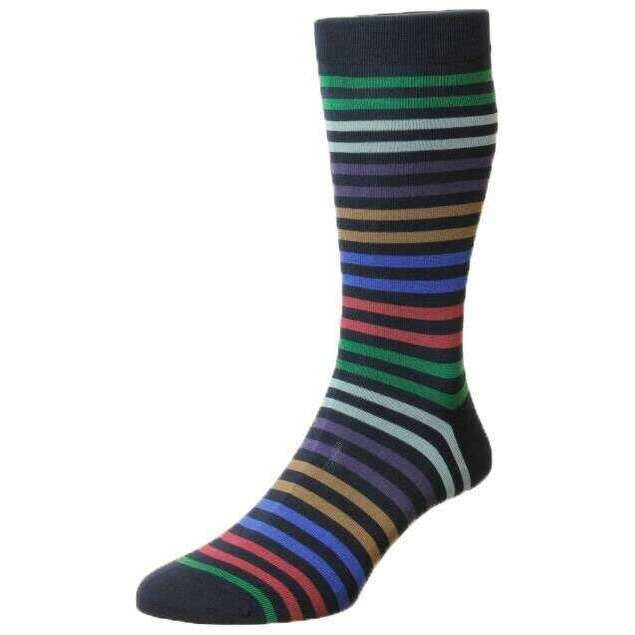 Pantherella Kilburn All Over Stripe Cotton Lisle Socks - Navy