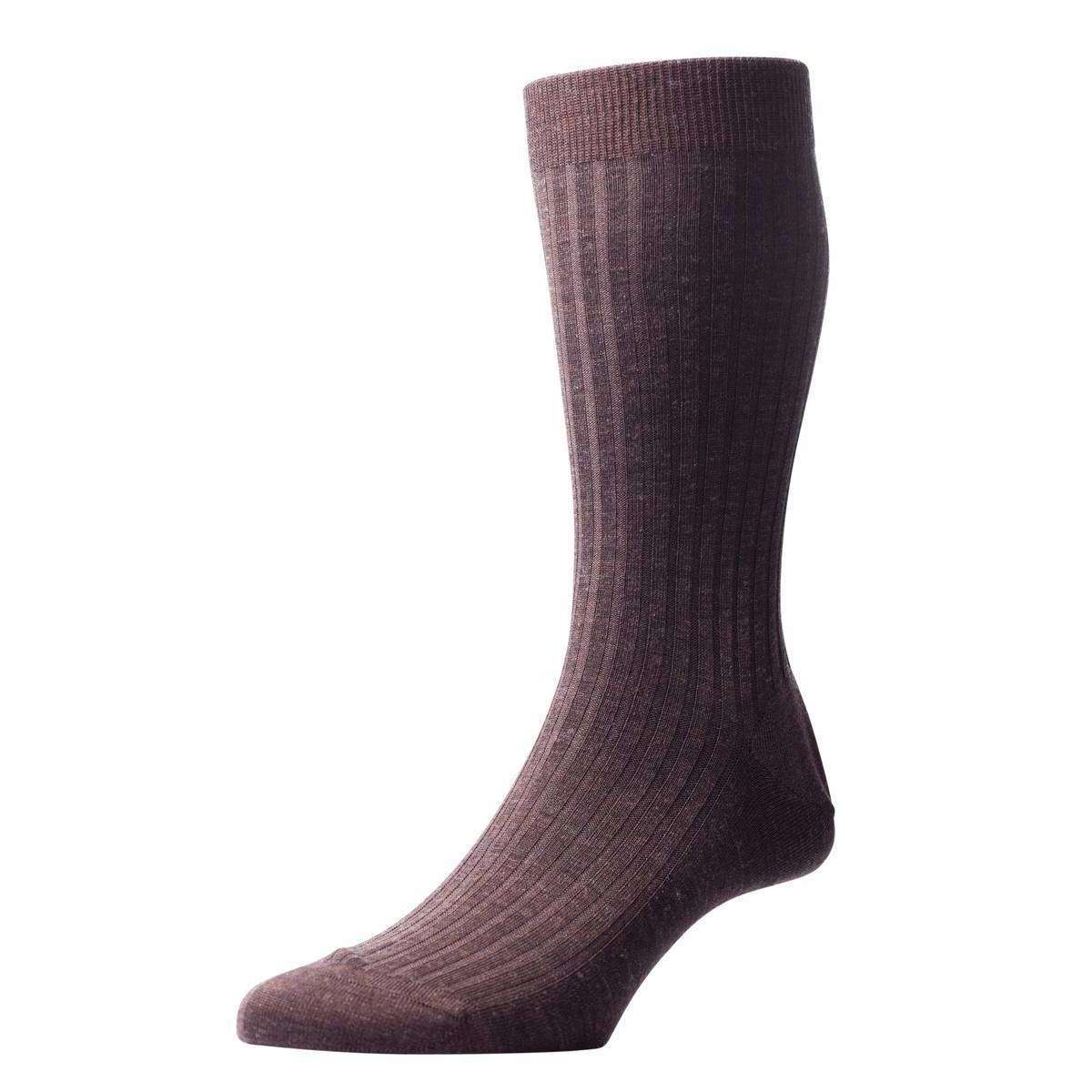 Pantherella Laburnum Rib Merino Wool Socks - Dark Brown Mix