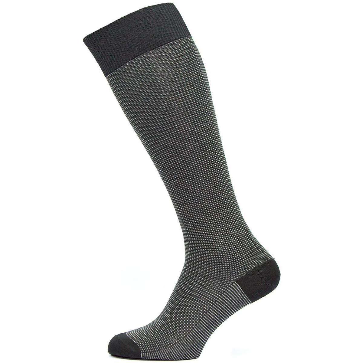 Pantherella Tewkesbury Three Colour Birdeye Over the Calf Cotton Lisle Socks - Black