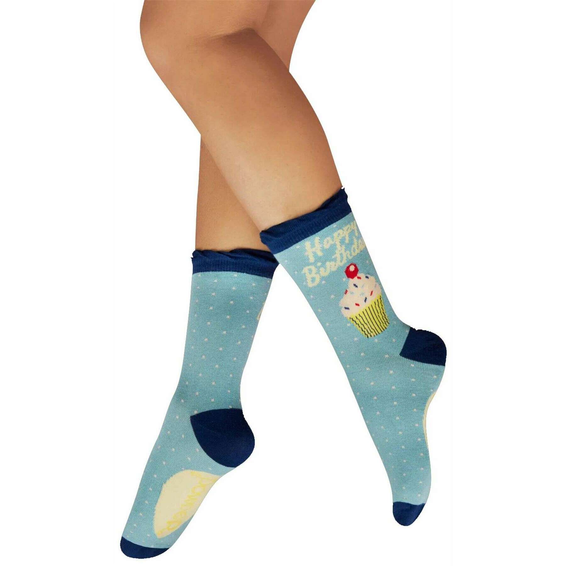 Powder Birthday Treat Ankle Socks - Blue/Beige/Yellow