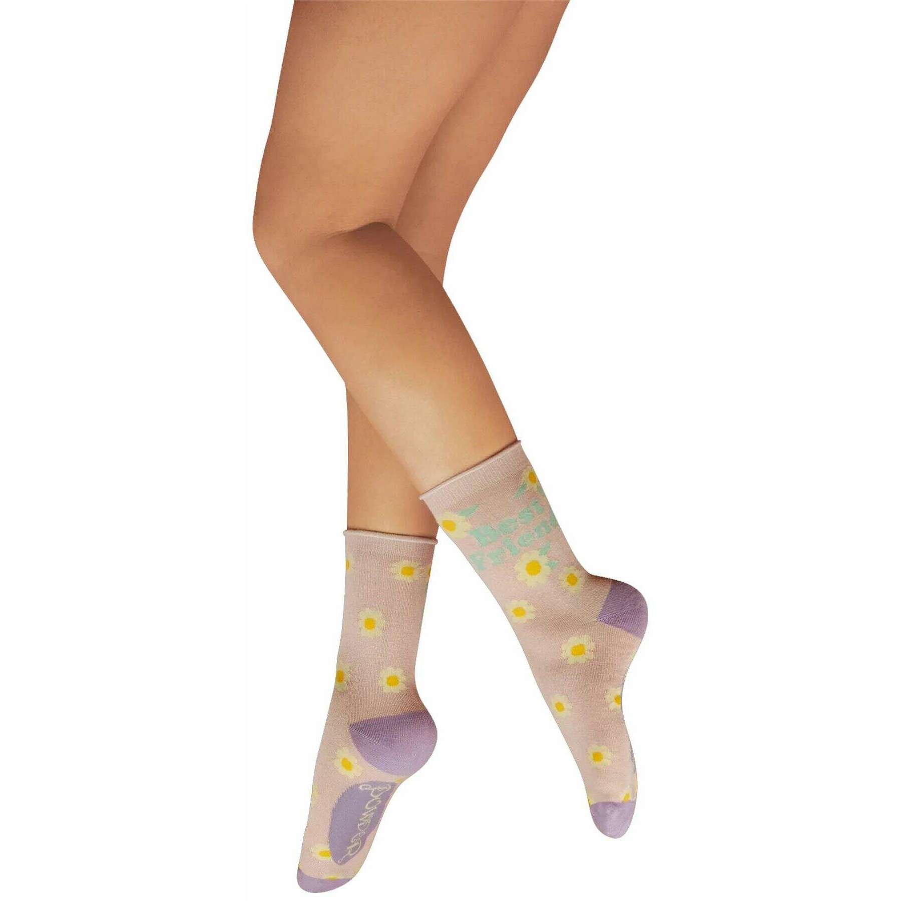These women's daisy besties ankle socks by the brand Powder are made from 65% bamboo, 15% cotton, 10% nylon and 10% elastane and are showcased in pink. Also the pink/yellow/purple socks are designed in a floral pattern, It is recommended to wash at 30 degrees to keep these socks in good condition. All the socks come complete with powder sock tags. The Powder Daisy Besties Ankle Socks - Pink/Yellow/Purple feature a fun, playful design that will be a joyful addition to any of your outfits. Made using bamboo these socks are incredibly comfortable and durable. The rich colouring and playful background ensure these socks standout. Perfect as a gift these pink and yellow socks are ideal for summery outfit.
