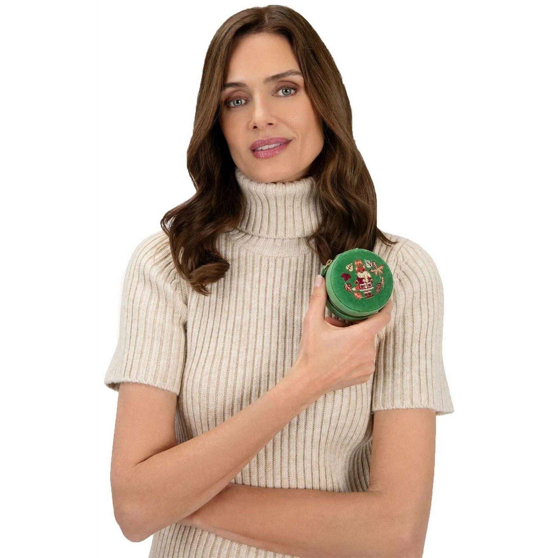 Powder Fox Round Velvet Jewellery Box - Fern Green