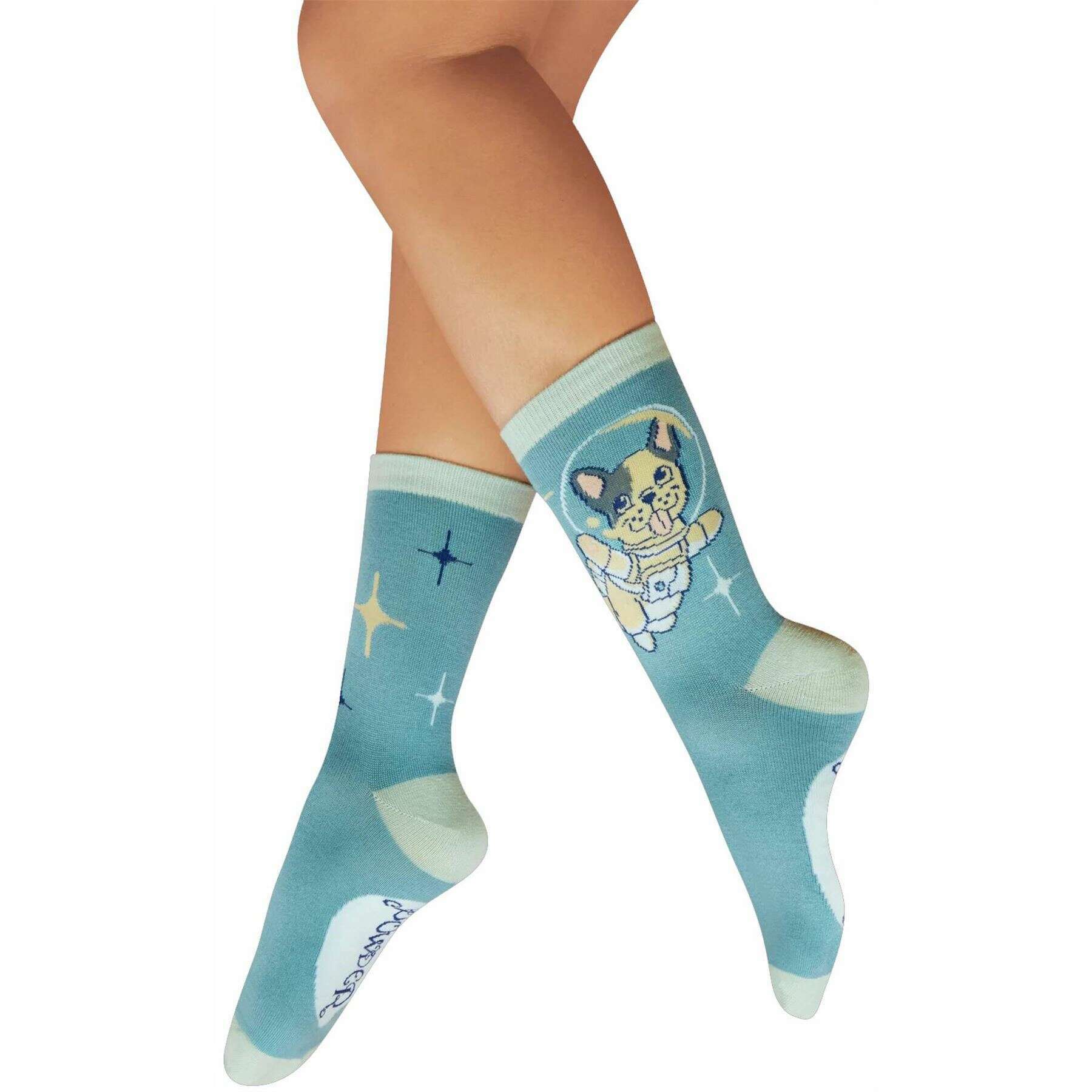 Powder Frenchie In Space Ankle Socks - Blue/Beige