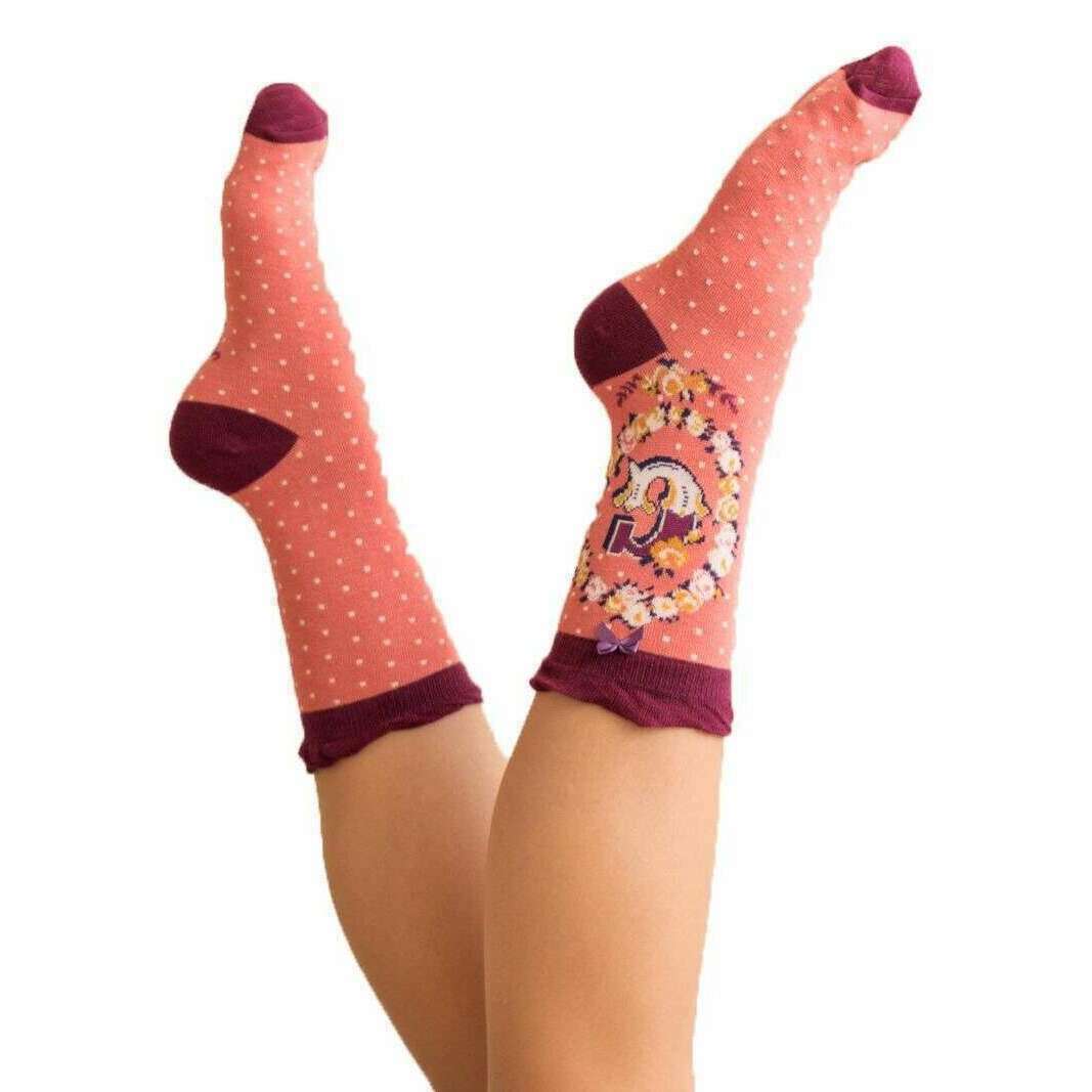These letter g ankle socks for women are fashioned by the brand Powder in a pink colour and are made from 65% bamboo, 15% cotton, 10% nylon and 10% elastane. Also the pink socks are designed in a spots pattern, It is recommended to machine wash at 30 degrees to keep these socks in good condition. All the socks come complete with powder tags. The Powder Letter G Ankle Socks - Pink are the perfect socks for a personalised gift! Made using bamboo these socks will keep your feet stylish and warm. Available with every letter of the alphabet these socks have a fun, playful design that you are sure to love!