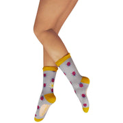 These lovely ladybirds ankle socks for women are fashioned by the brand Powder in a purple colour and are made from 65% bamboo, 15% cotton, 10% nylon and 10% elastane. Also the purple/yellow/red socks are designed in a floral pattern, It is recommended to wash at 30 degrees to keep these socks in good condition. All the socks come complete with powder sock tags. The Powder Lovely Ladybirds Ankle Socks - Purple/Yellow/Red feature a fun, playful design that will be a joyful addition to any of your outfits. Made using bamboo these socks are incredibly comfortable and durable. The rich colouring and playful background ensure these socks standout. Perfect as a gift these purple and yellow socks are ideal for summery outfit.
